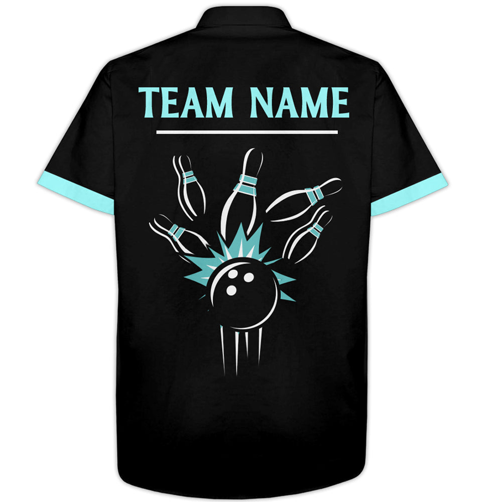 Black&Ice Blue Bowling Shirt For Men & Women Custom Retro Bowling Jersey Hawaiian Bowling League Shirt BDT534