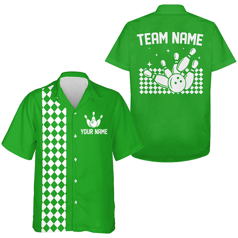 Personalized Retro Checkered Bowling Hawaiian Shirt, Custom Bowler Button Down Shirt | Multi colors NQS8246