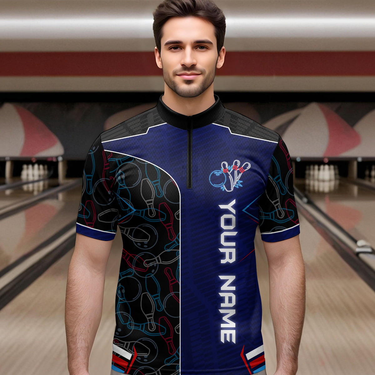 Bowling Jersey for Men Personalized Bowling Gifts for Men Bowling Team Shirts with Name Polo & 1/4 Zip HNT29