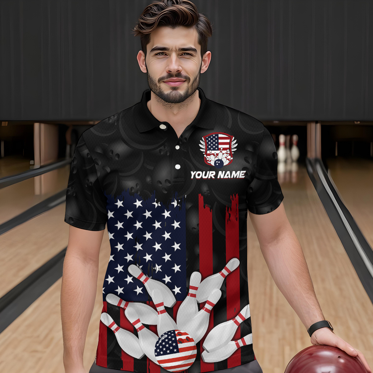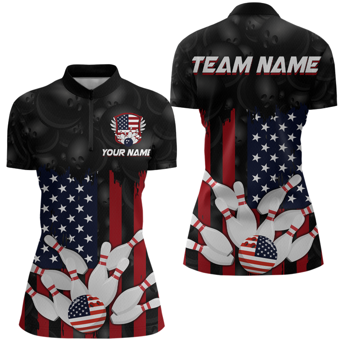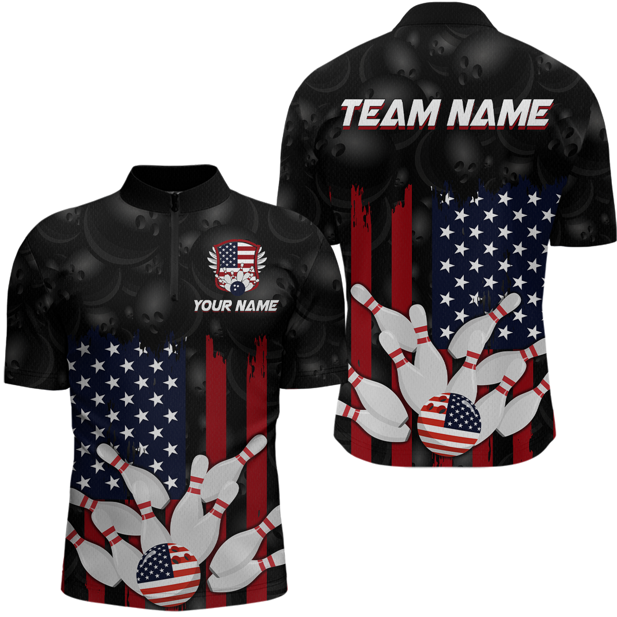 Custom American Flag Bowling Shirts for Men Women Patriotic Bowling Polo & 1/4 Zip MBL03