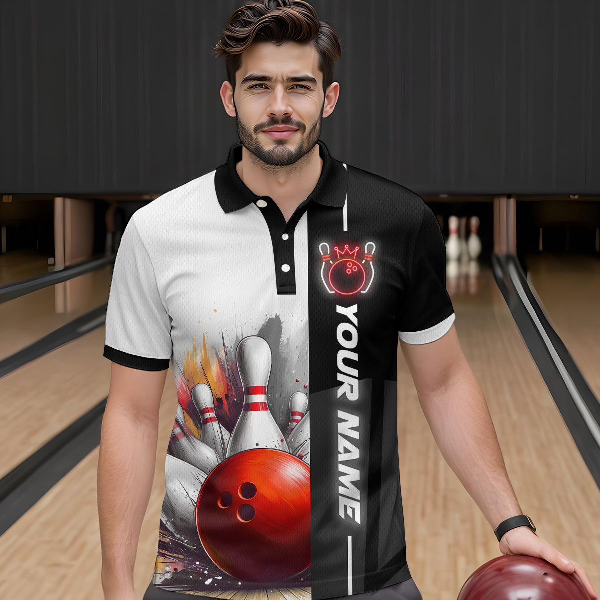 Custom Bowling Jersey for Men Bowling Gifts for Men Bowling Team Shirts with Name Polo & 1/4 Zip HNT25