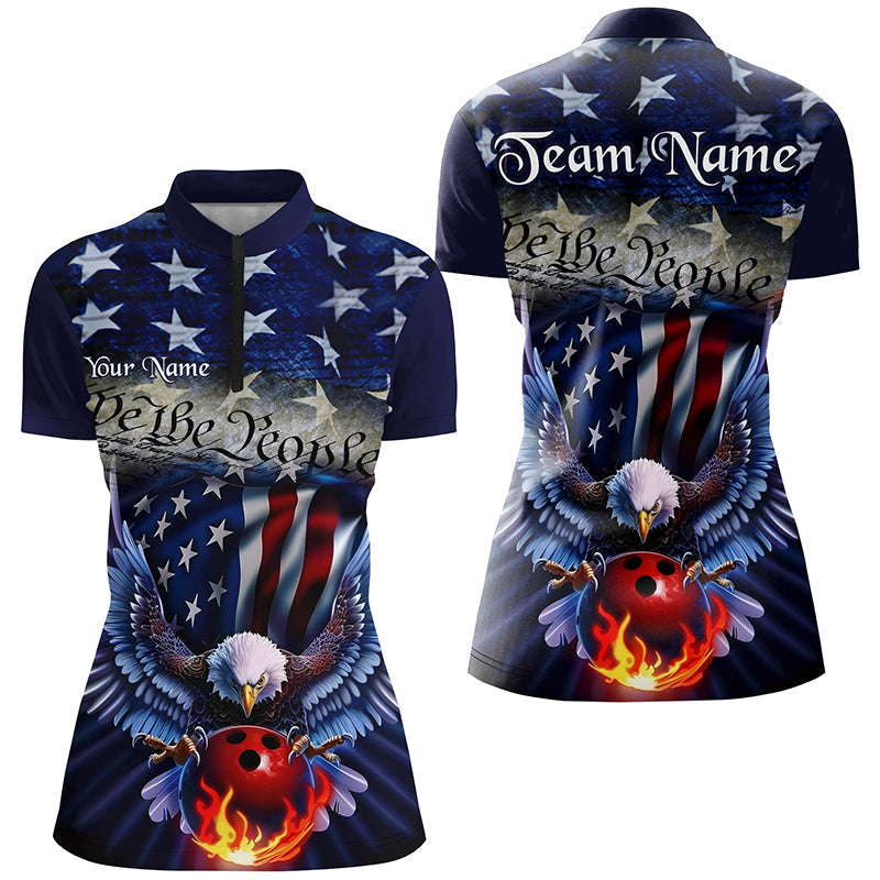 Customized Eagle Bowling Shirt Patriotic Polo Bowling Jersey For Women US Bowling | Blue IPHW7110