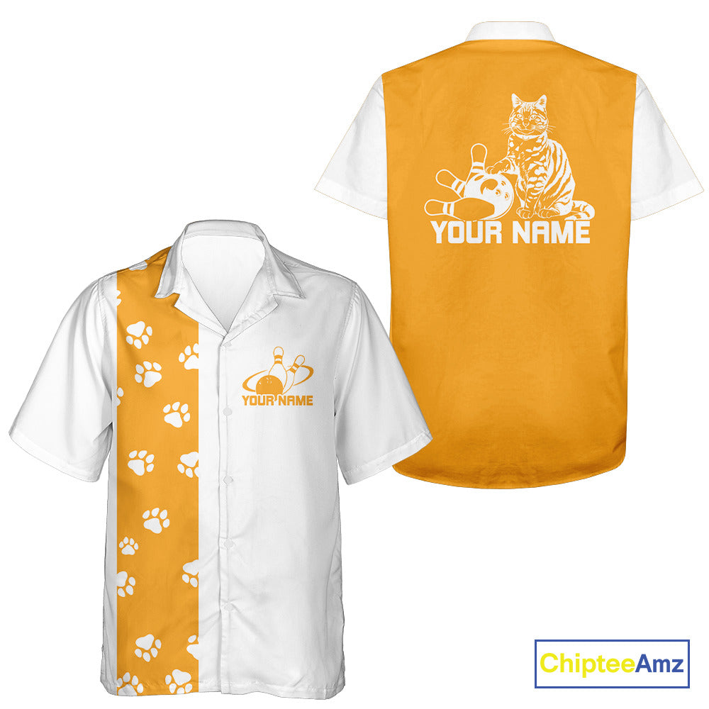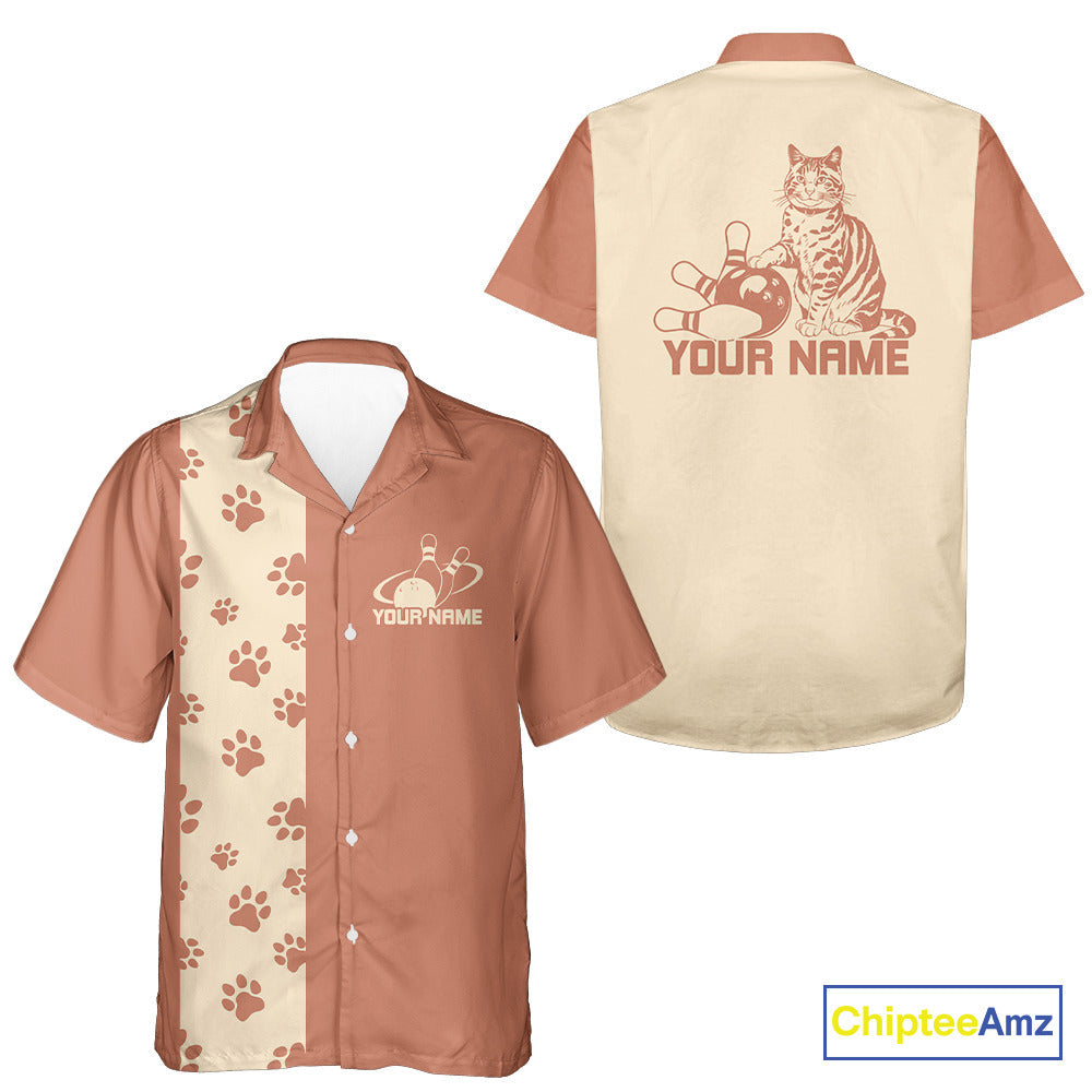 Custom Retro 50S Cat Bowling Button Up Shirt For Men And Women, Classic Cat Bowling Shirt IPHW10070