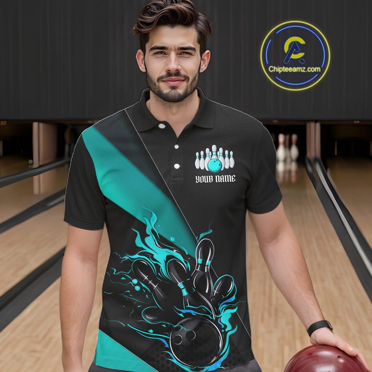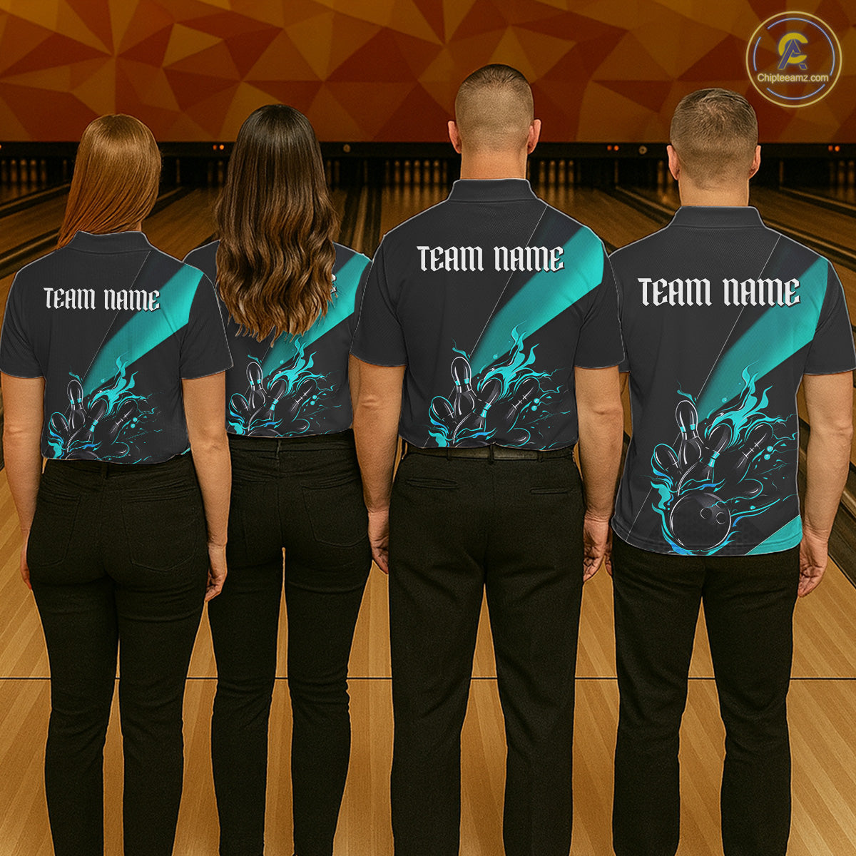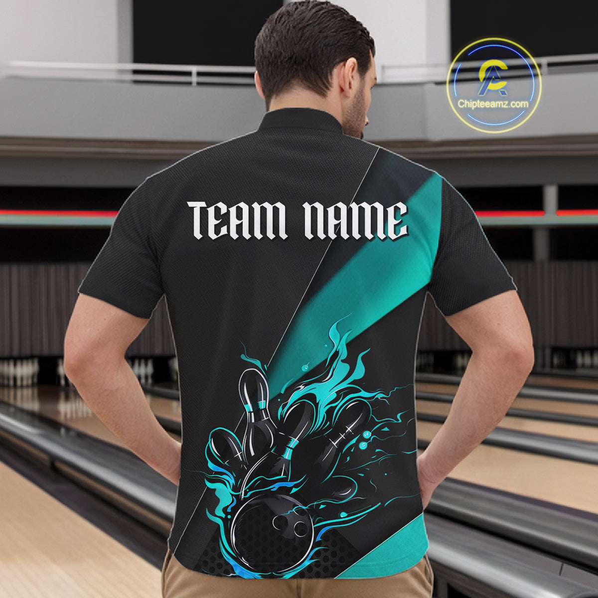 Black And Blue Custom Name Bowling Tournament Jerseys For Men And Women, Bowling Team Shirts IPHW6186