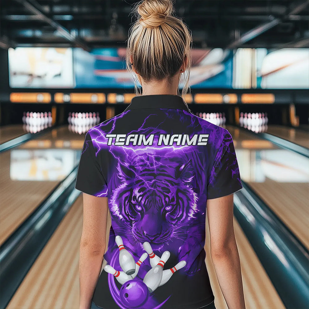 Personalized Purple Lightning Thunder Storm Tiger Bowling Shirts For Women Custom Bowling Team Jerseys NQS9684