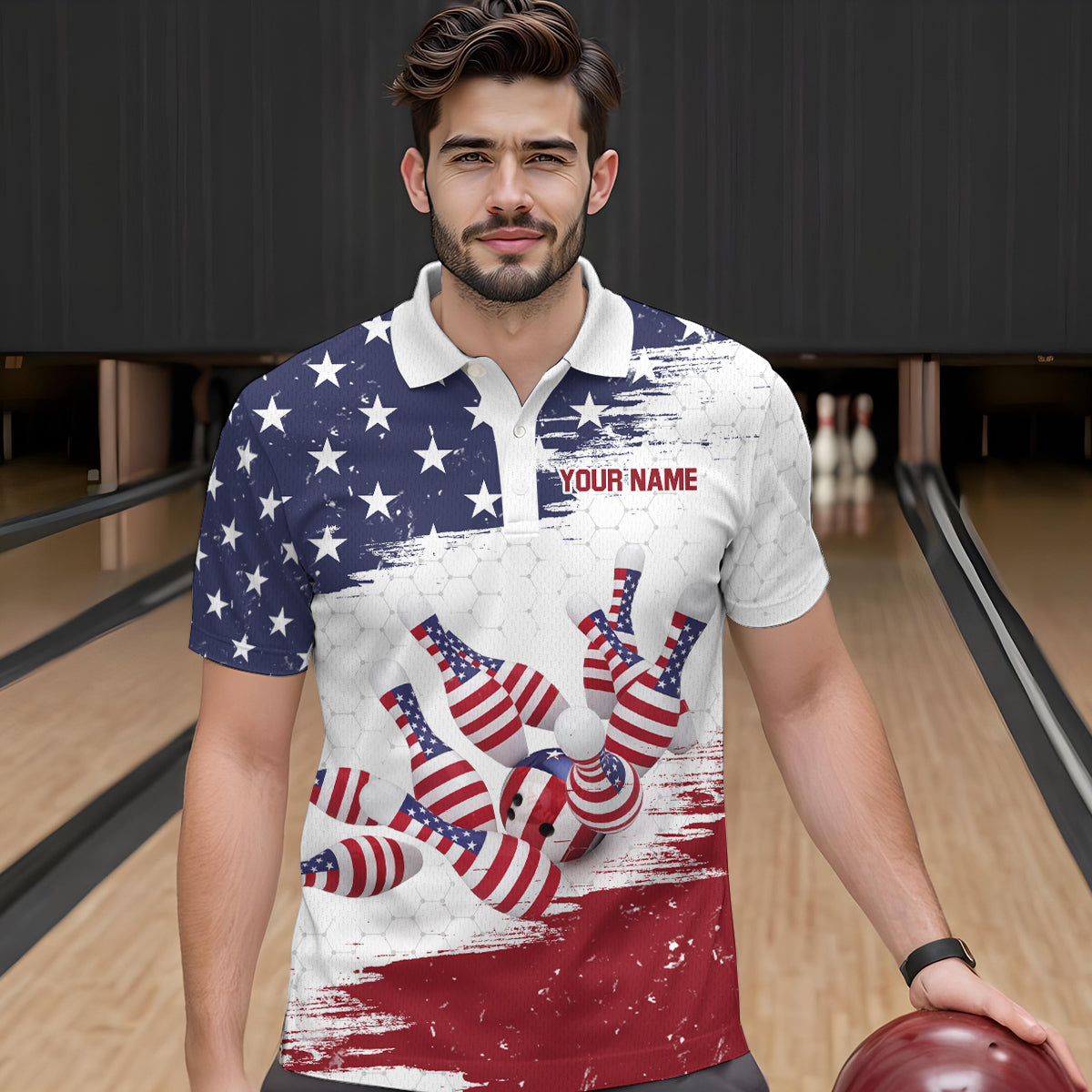 American Flag Bowling Polo Shirt Custom Bowling Jersey for Men Bowling Team League QZT52