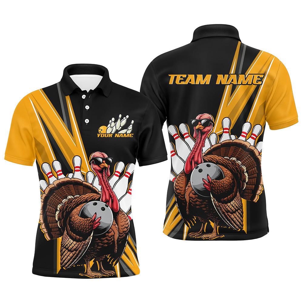 Black And Yellow Custom Awesome Turkey Bowling Shirts For Men, Thanksgiving Bowling Team Jerseys IPHW7880