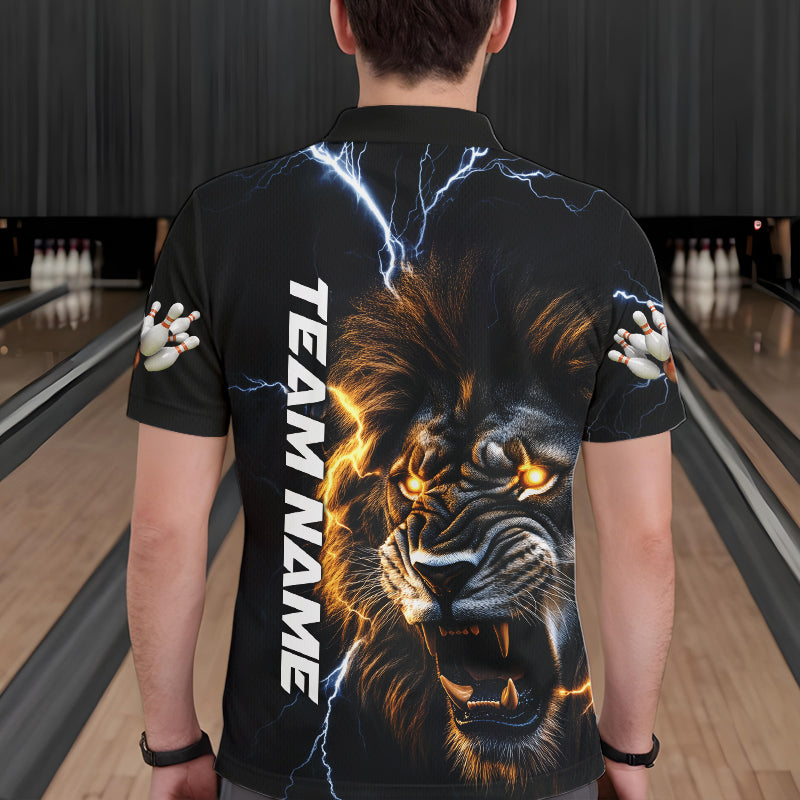 Custom Blue Thunder Lightning Lion Bowling Team Men Polo Shirts, Lion Bowling League Shirt IPHW8986