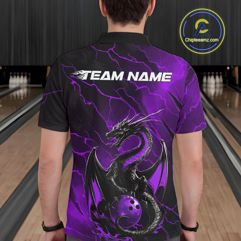Custom Purple Lightning Dragon Bowling Polo Shirt For Men, Dragon Bowling Team Jersey IPHW9902