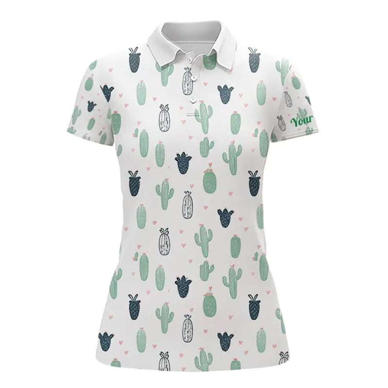 Funny Cactus Flower Pattern Womens Golf Polo Shirts Custom, Cactus Golf Shirt Personalized NHN0151