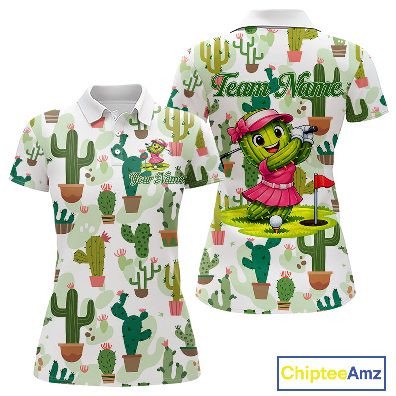 Funny Cactus Flower Womens Golf Polo Shirt Custom Name Golf Tops, Cactus Golf Shirt Personalized NHN0237