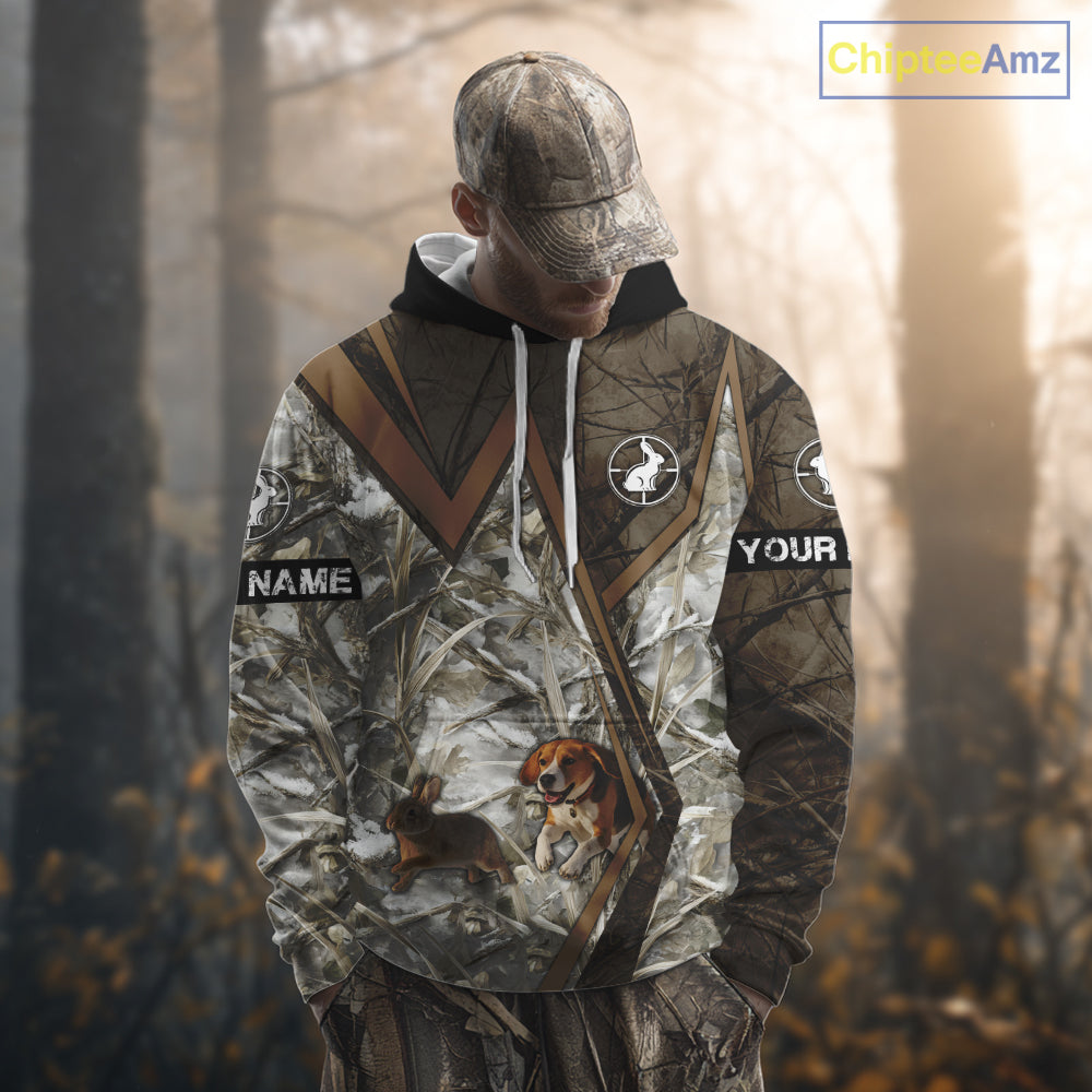 Beagle Dog Chasing the Rabbit Camo Custom Name Shirts, Rabbit Hunting Gifts NHT283