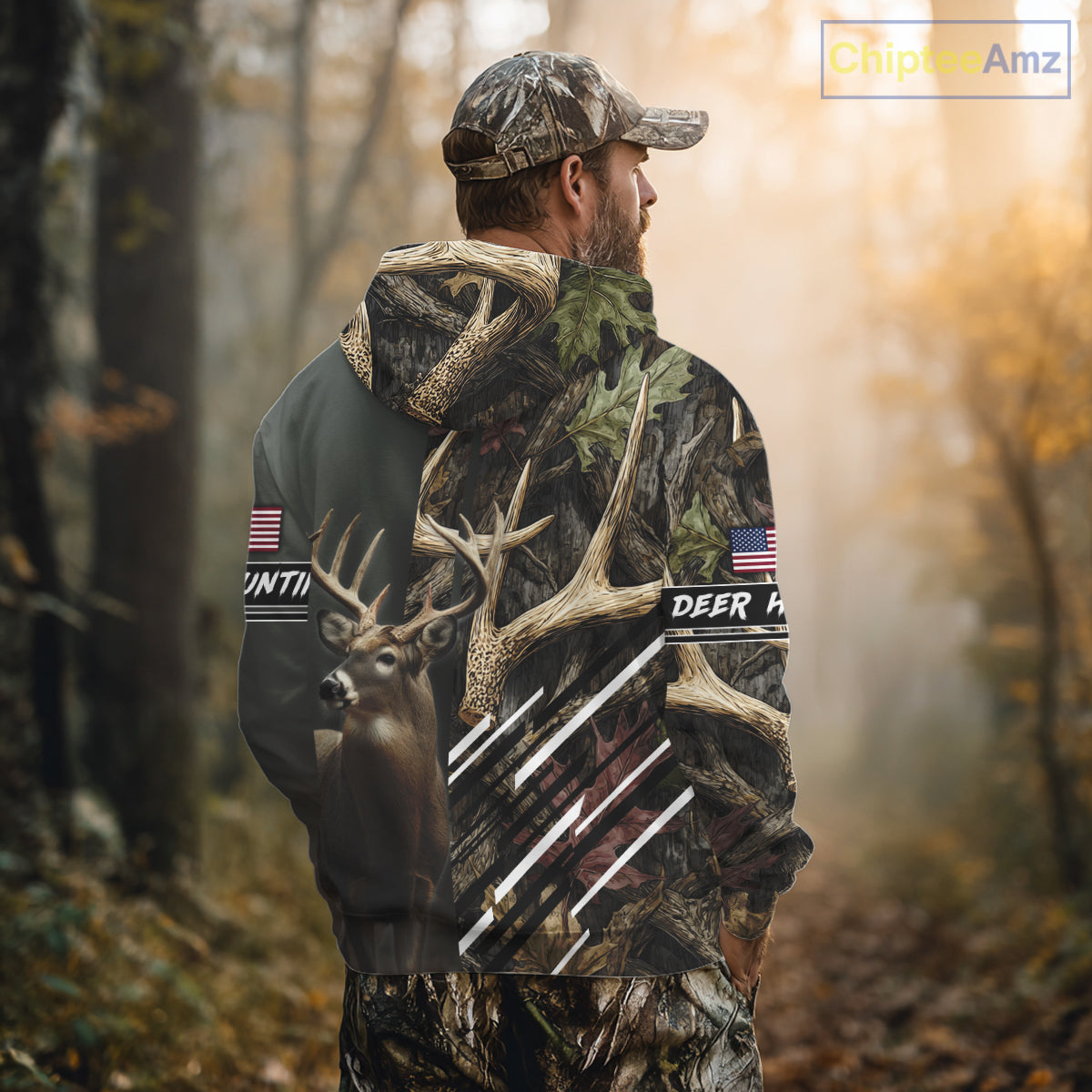 Custom Deer 3D Hunting Shirt, Antler Camo Design, Personalized Name Hunting Gift for Men NHT286