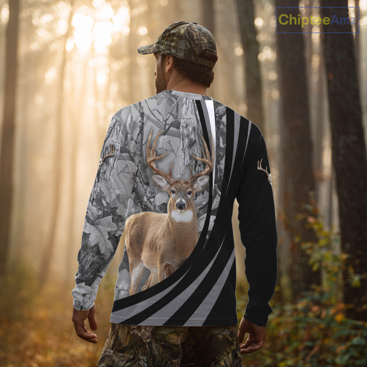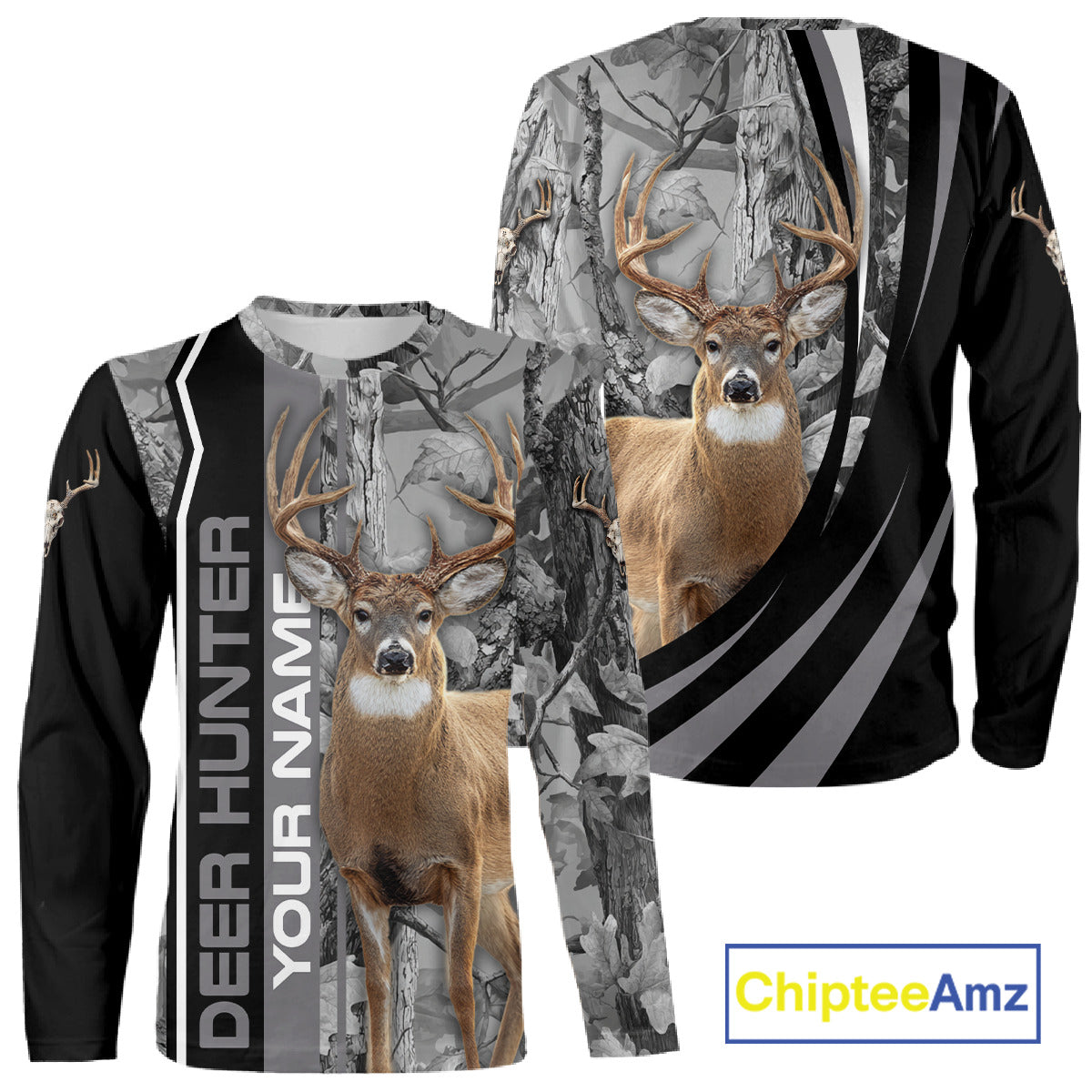 Deer Hunting Camo Custom Name 3D All Over Print Shirt Gray Black, Best Deer Hunting Shirt NHT210