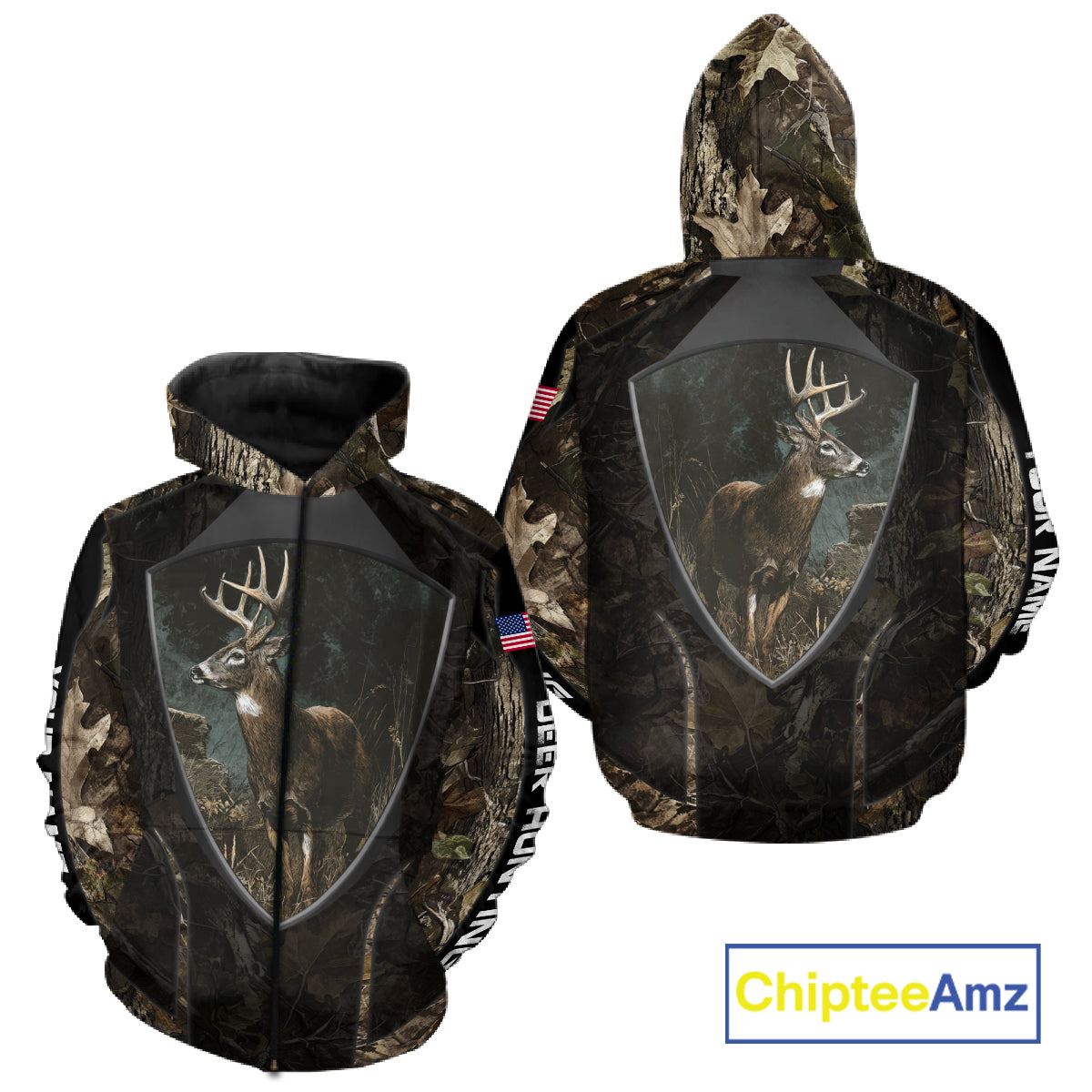 Whitetail Deer Hunting Camo US Flag 3D All Over Printed Shirts, Best Deer Hunting Gifts for Men NBT222