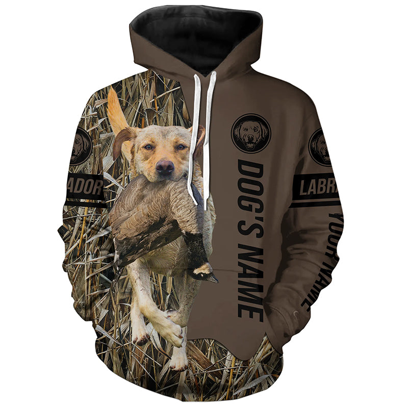 Yellow Labrador Retriever Hunting dog customized Name Shirt, camo and brown color FSD4670