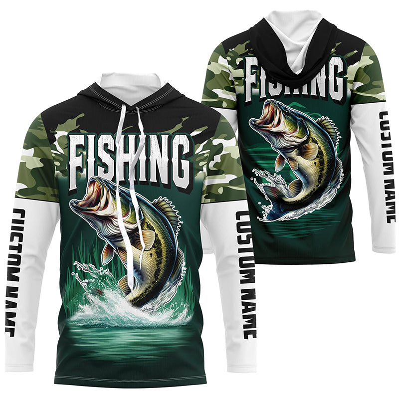 Camouflage Largemouth Bass Fishing Custom Long Sleeve Tournament Shirts, Fishing Gifts For Fisherman IPHW6628