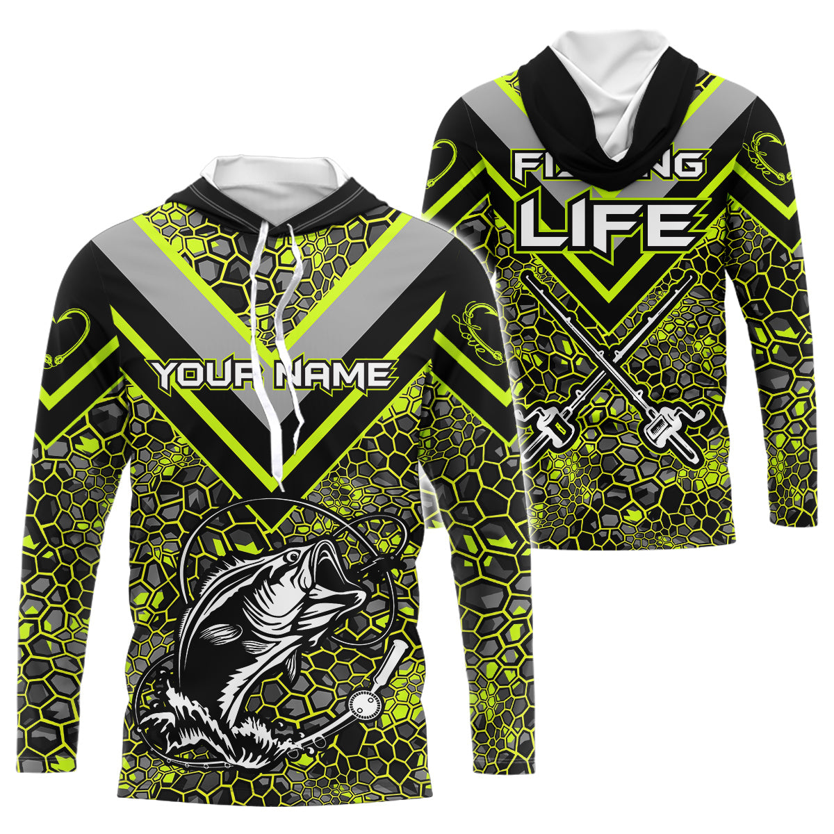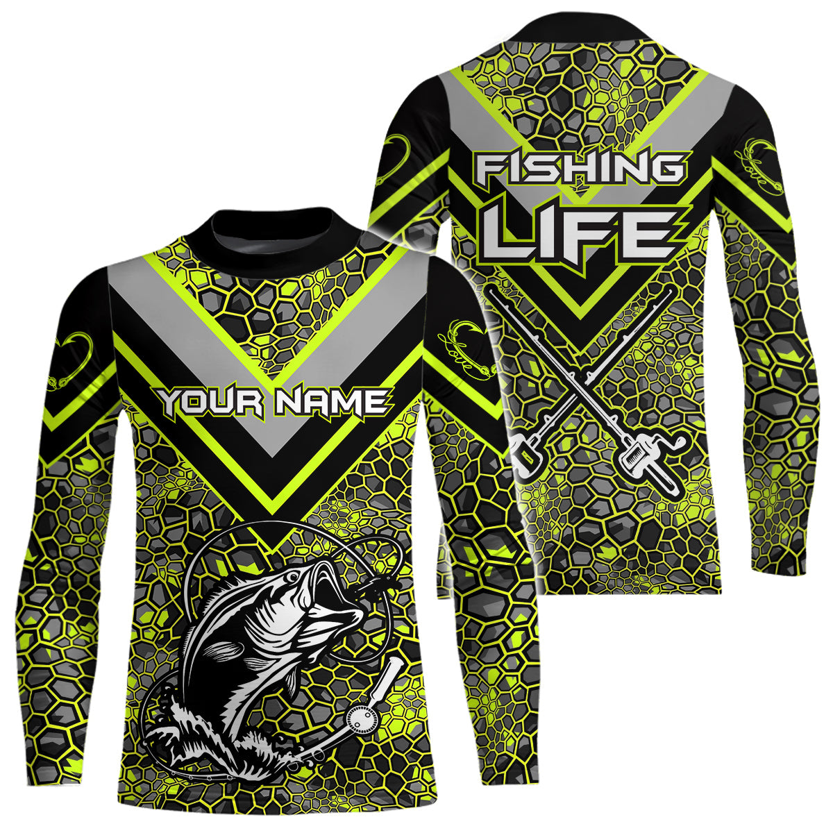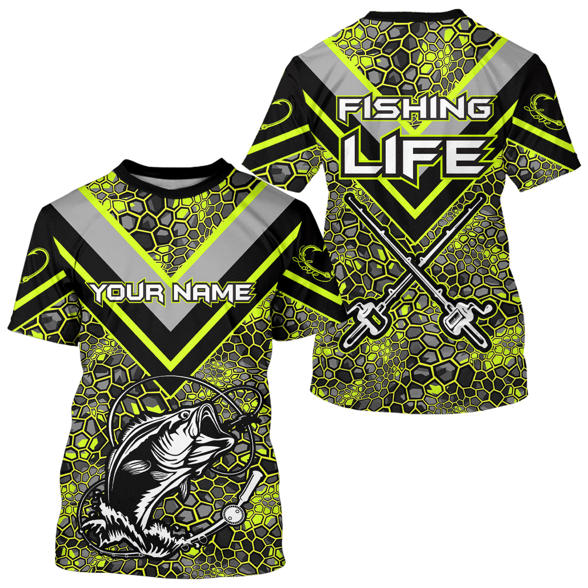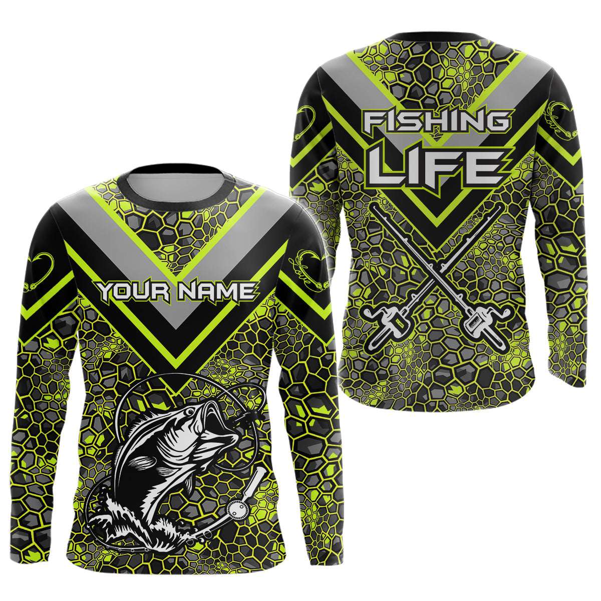 Personalized Bass Fishing Jerseys Shirts, Bass Fishing Camouflage Abstract Shirts Gift | Lime Green YYD0039