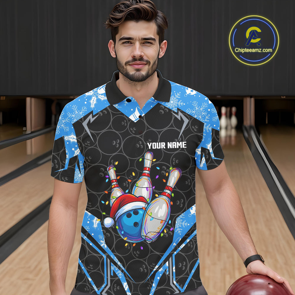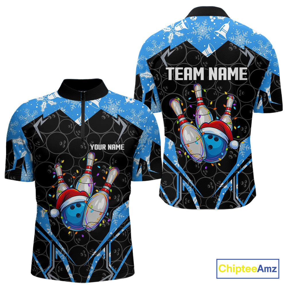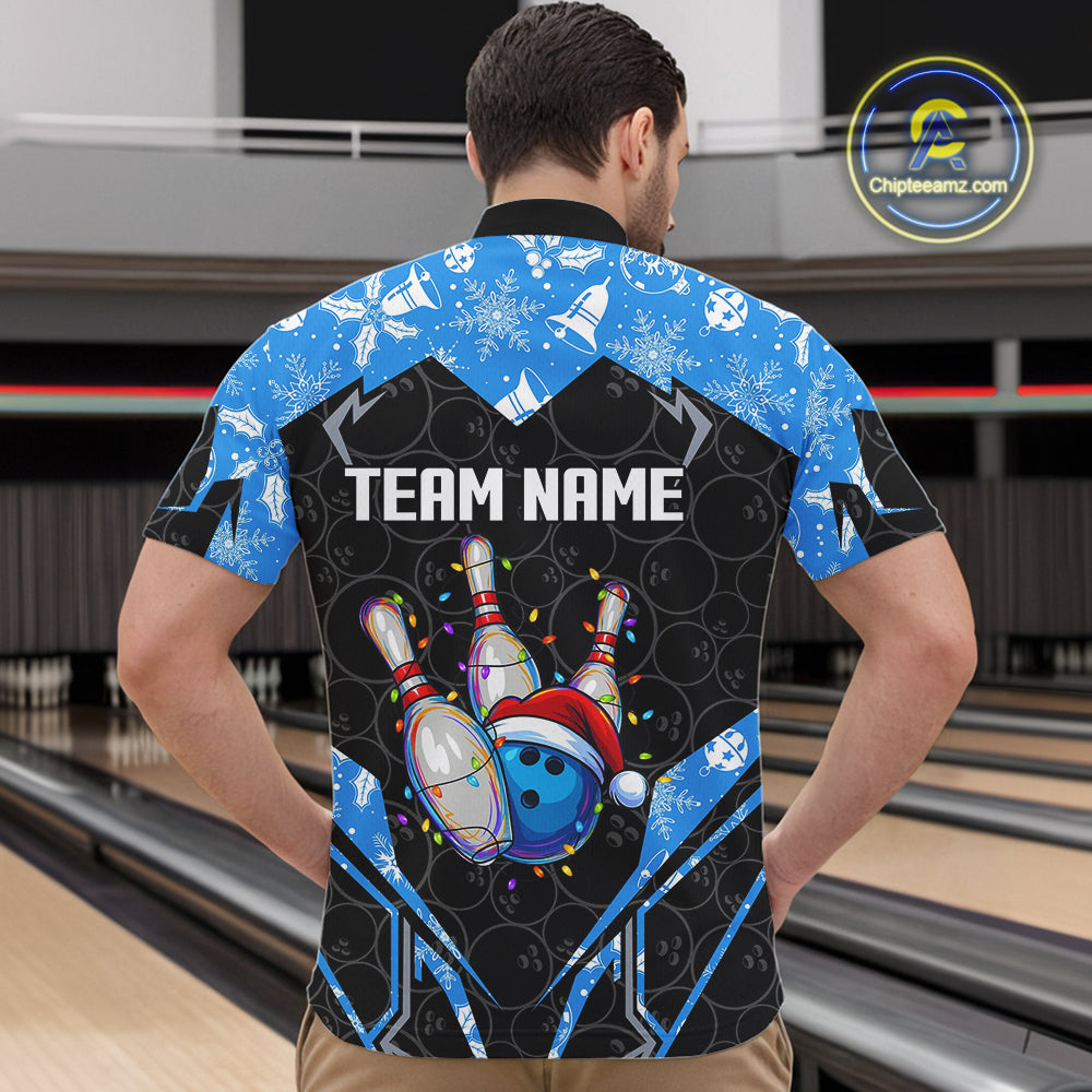 Black Camo Blue Christmas Bowling shirts for men Custom Team bowling jerseys gift for bowlers NQS10966