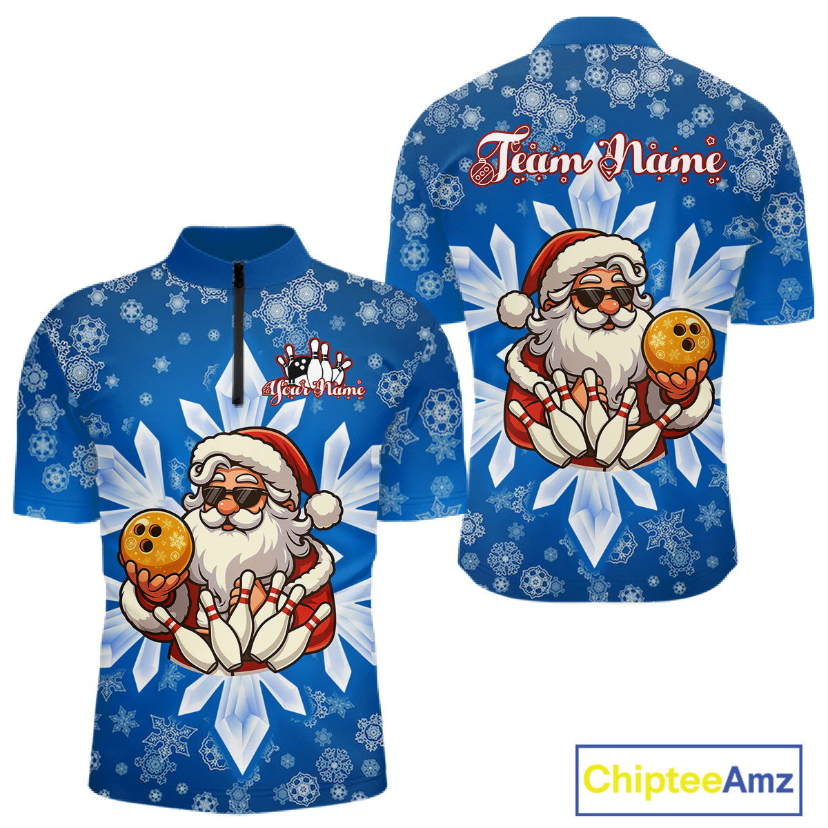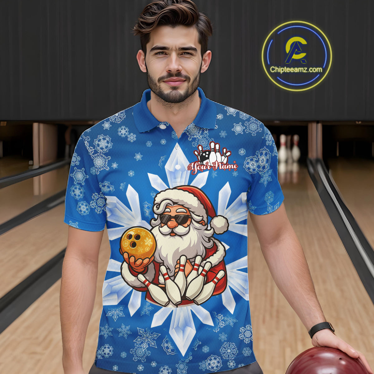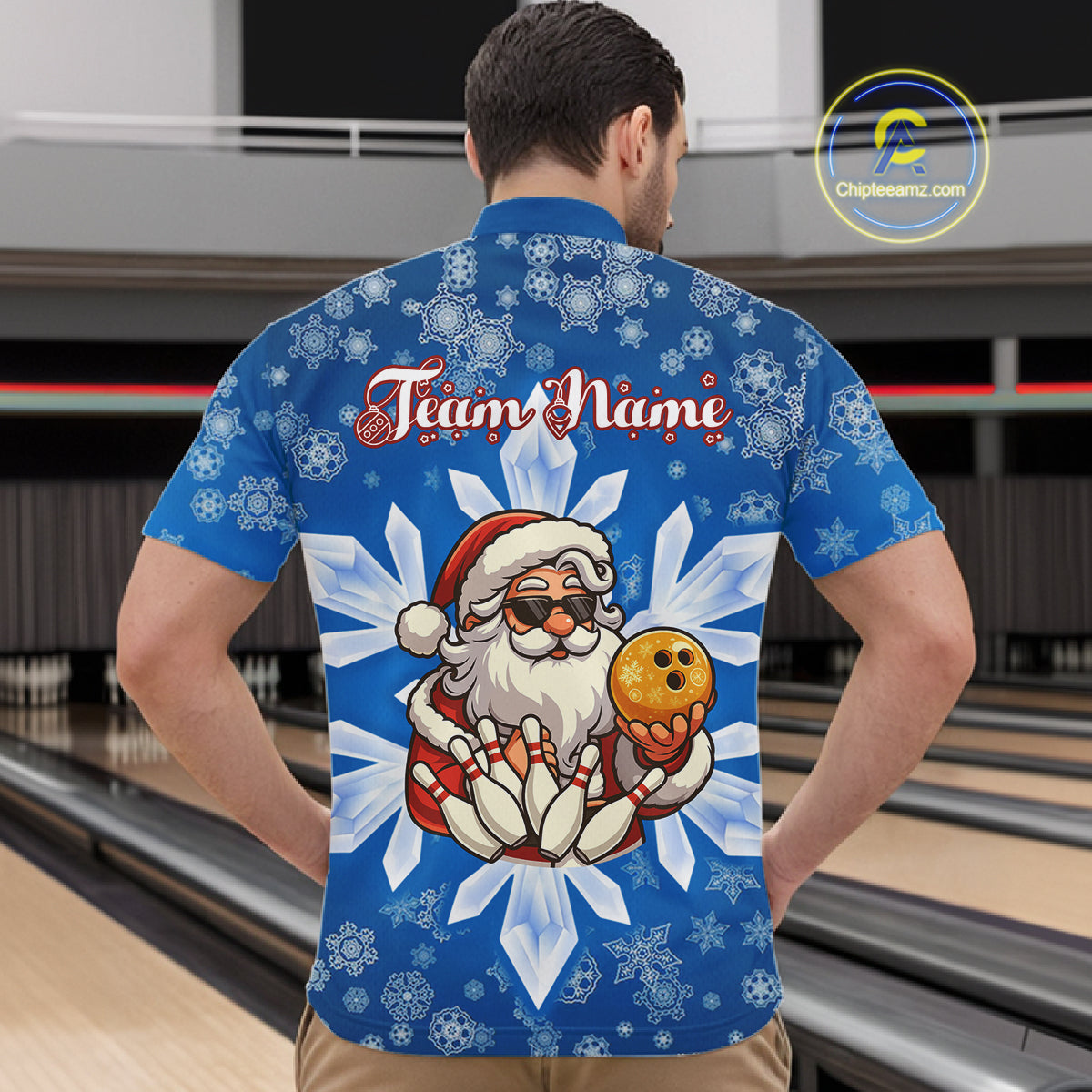 Blue Snowflake Funny Santa Bowling Shirts For Men Custom Christmas Bowling Team Jersey Xmas Gifts NQS11007