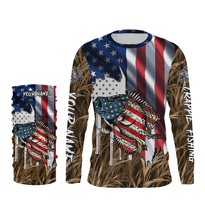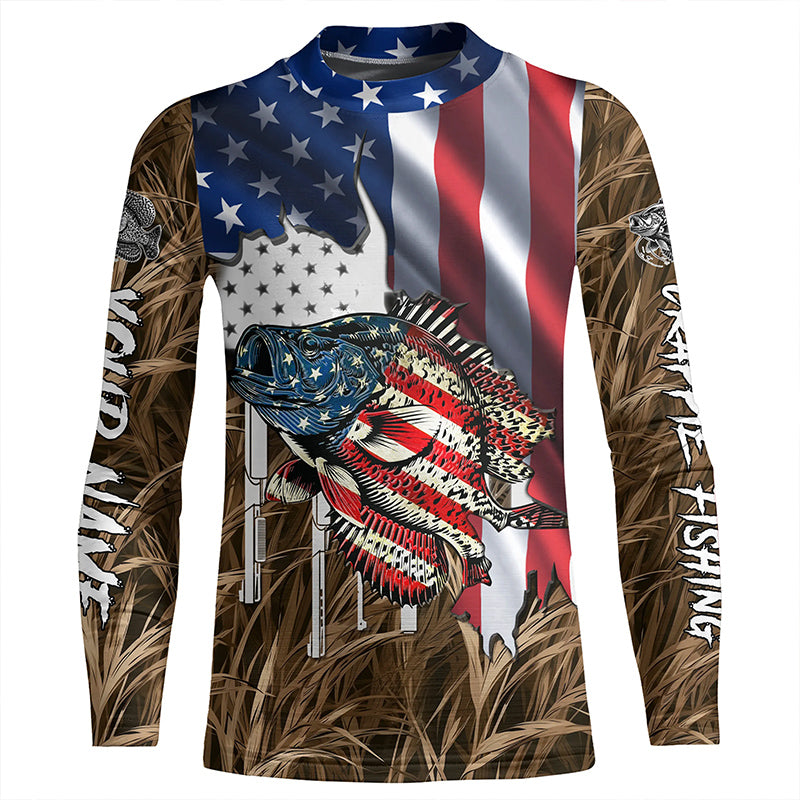 American flag patriot Crappie camo fishing, custom mens long sleeve sun protection fishing apparel NQS4110