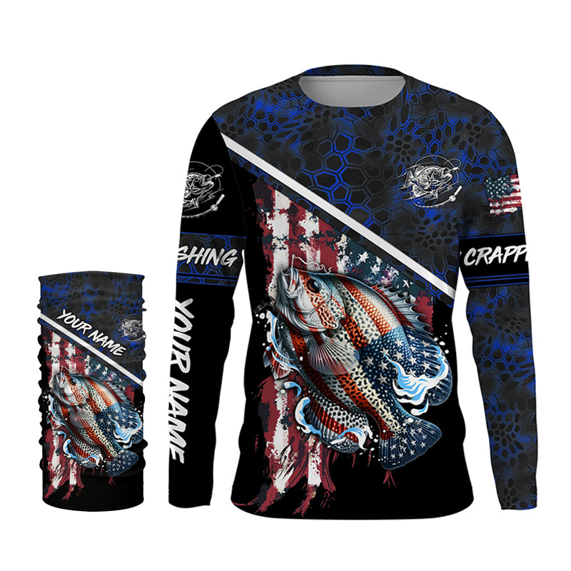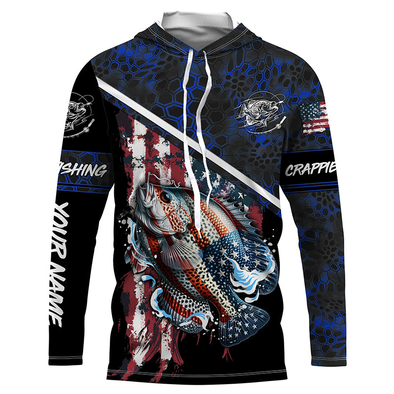 American Flag crappie fishing blue camo Custom Name Fishing Shirts UV Protection NQS3643