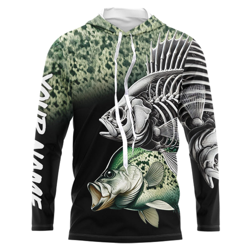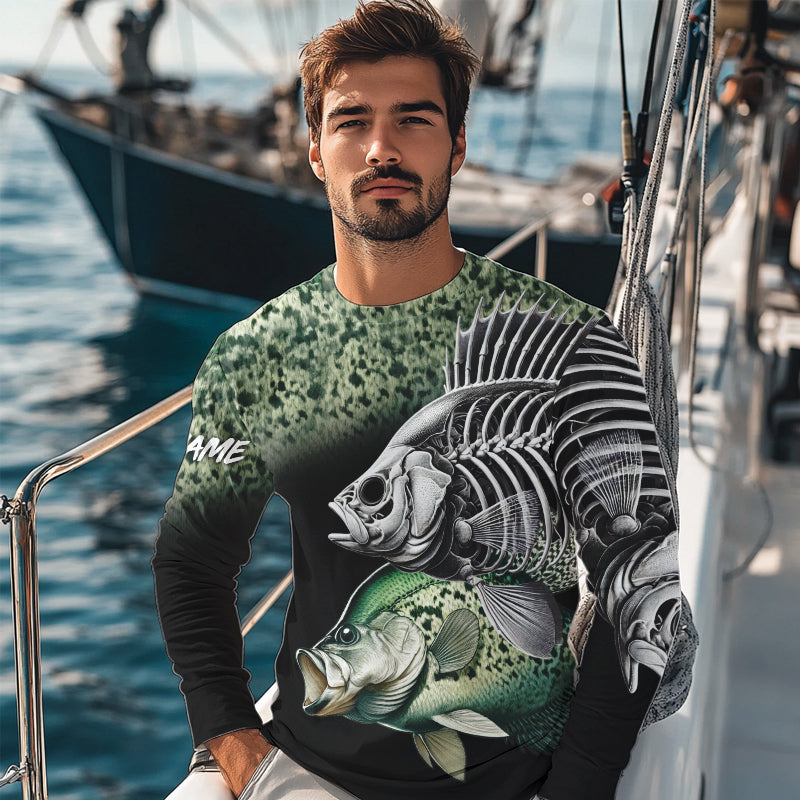 Crappie Reaper Skeleton Green scales Custom Long Sleeve Fishing Shirts, Personalized Fishing Gifts NQS9573