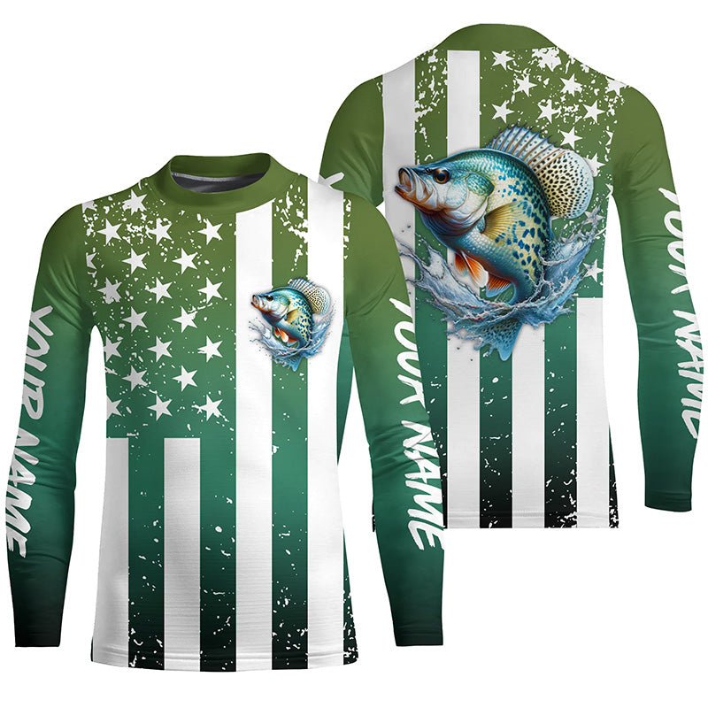 Custom Crappie Long Sleeve Tournament Fishing Shirts, Grunge American Flag Patriotic Fishing Shirts IPHW5603