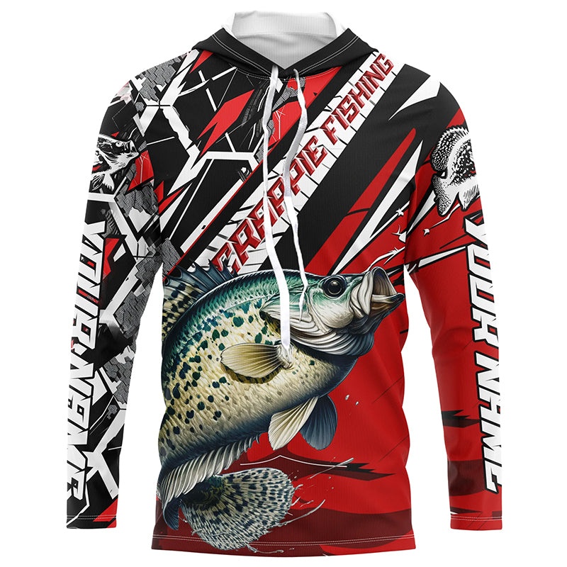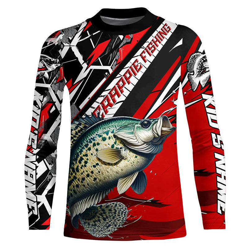 Personalized Crappie Fishing Jerseys, Crappie Long Sleeve Tournament Fishing Shirts | Black And Red IPHW6356
