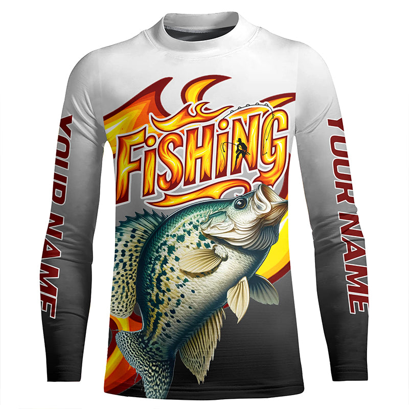 Custom Crappie Flame Fishing Shirts, Crappie Long Sleeve Fishing Jerseys Fishing Gifts IPHW6690