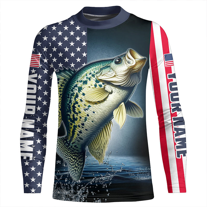 Personalized American Flag Crappie Long Sleeve Fishing Shirts, Patriotic Crappie Fishing Jerseys IPHW6879