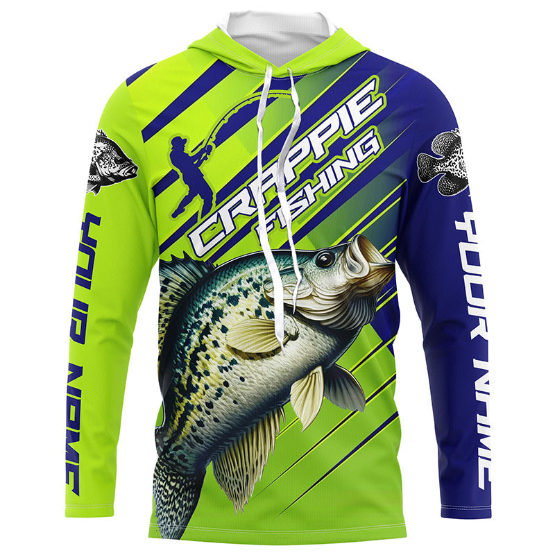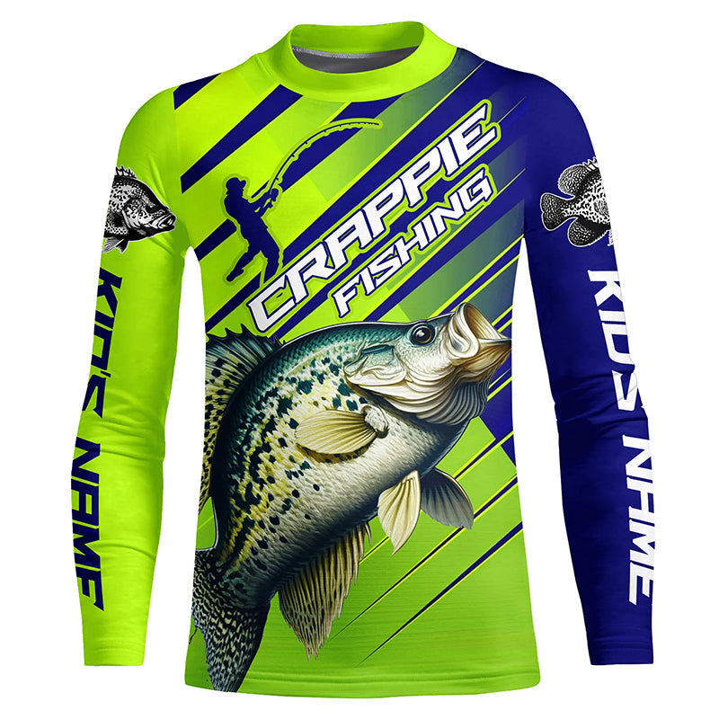 Crappie Fishing Custom Long Sleeve Tournament Shirts, Green And Blue Crappie Fishing Jerseys IPHW6894