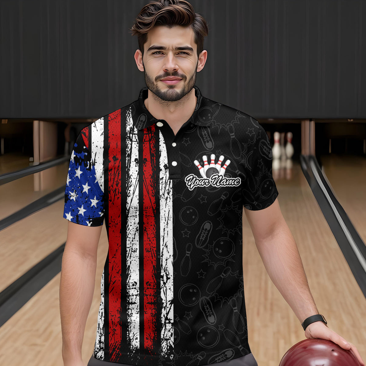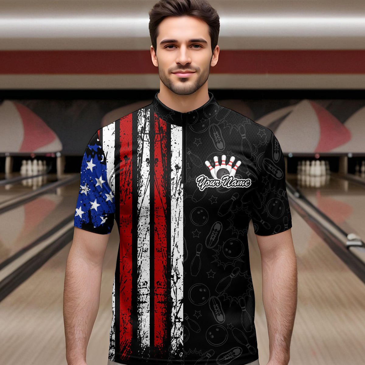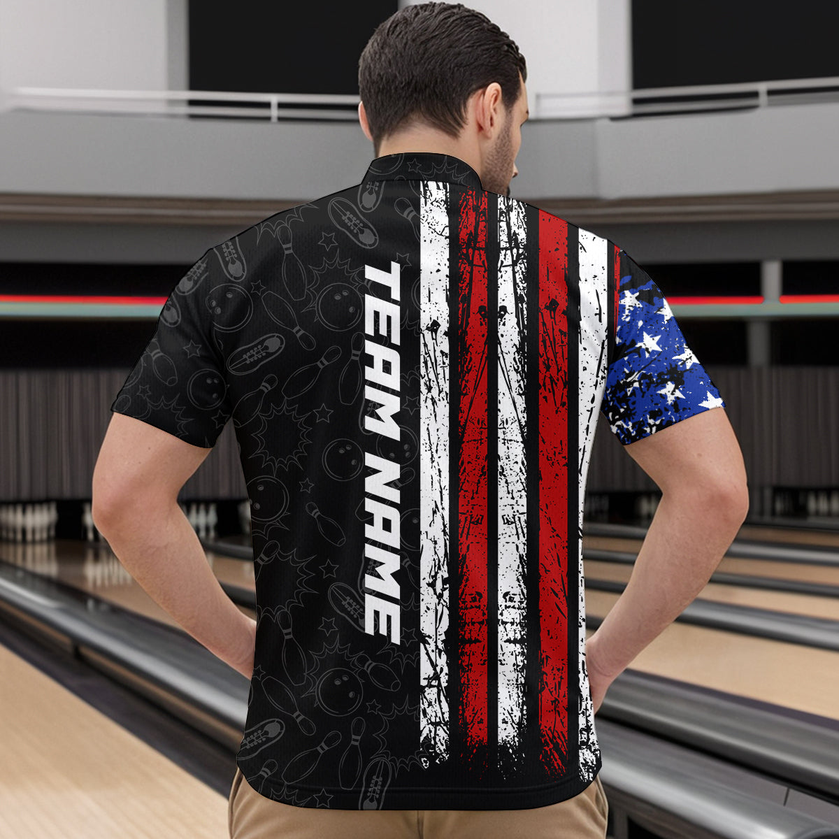 American Flag Bowling Custom Men Bowling Shirt Polo & Quarter-Zip Bowling Team Jerseys HNT52