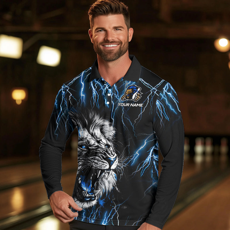 Black and Blue Lightning Thunder Lion Bowling Shirt For Men Custom Lion Bowling Team Jerseys NQS9645