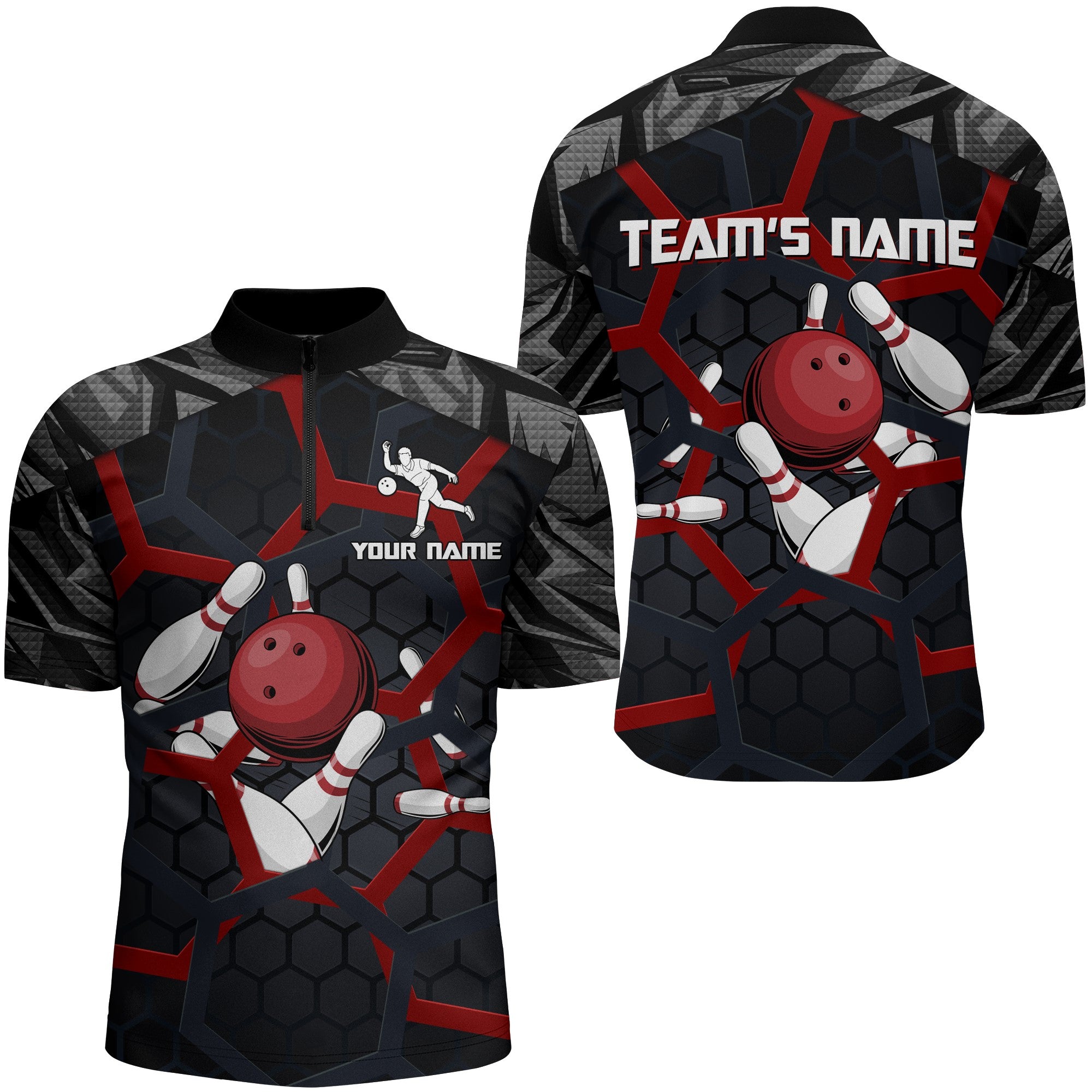 Custom Bowling Quarter-Zip Shirt For Men Camo Bowling Jersey 1/4 Zip Bowling Team League Shirts BDT198