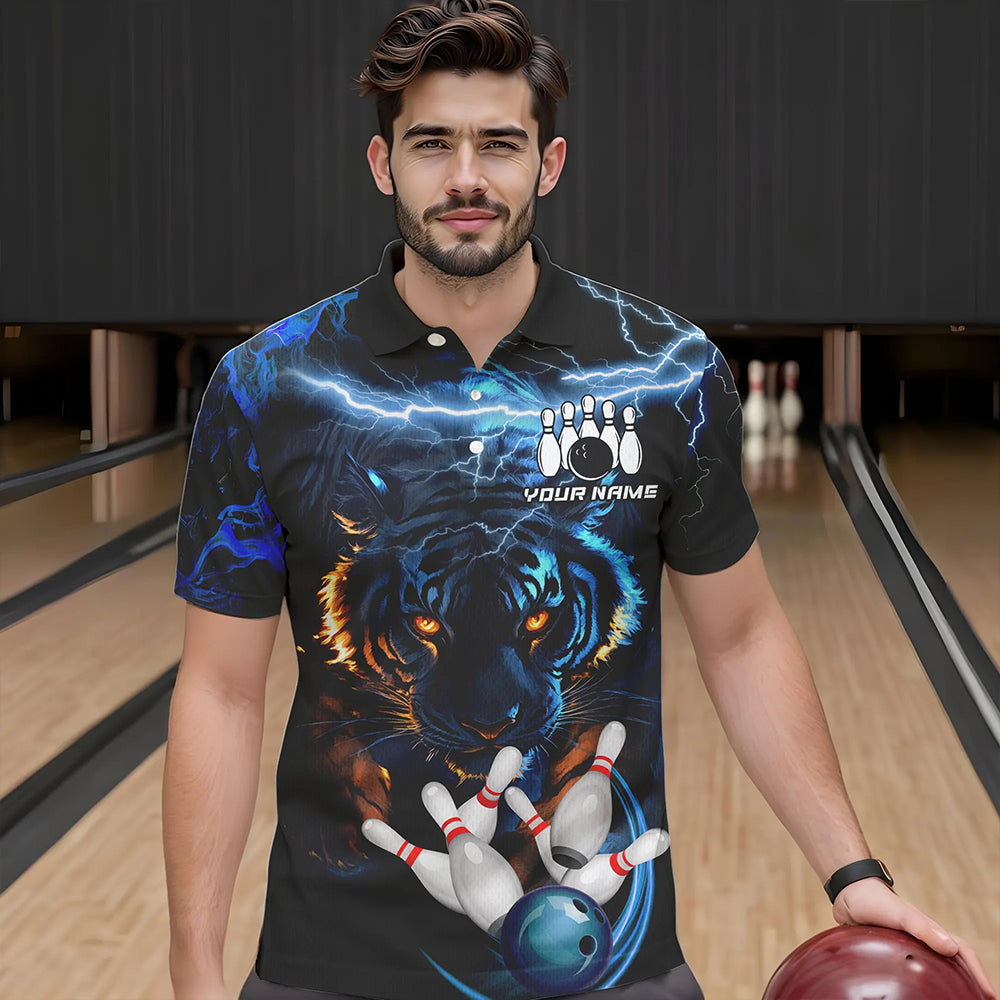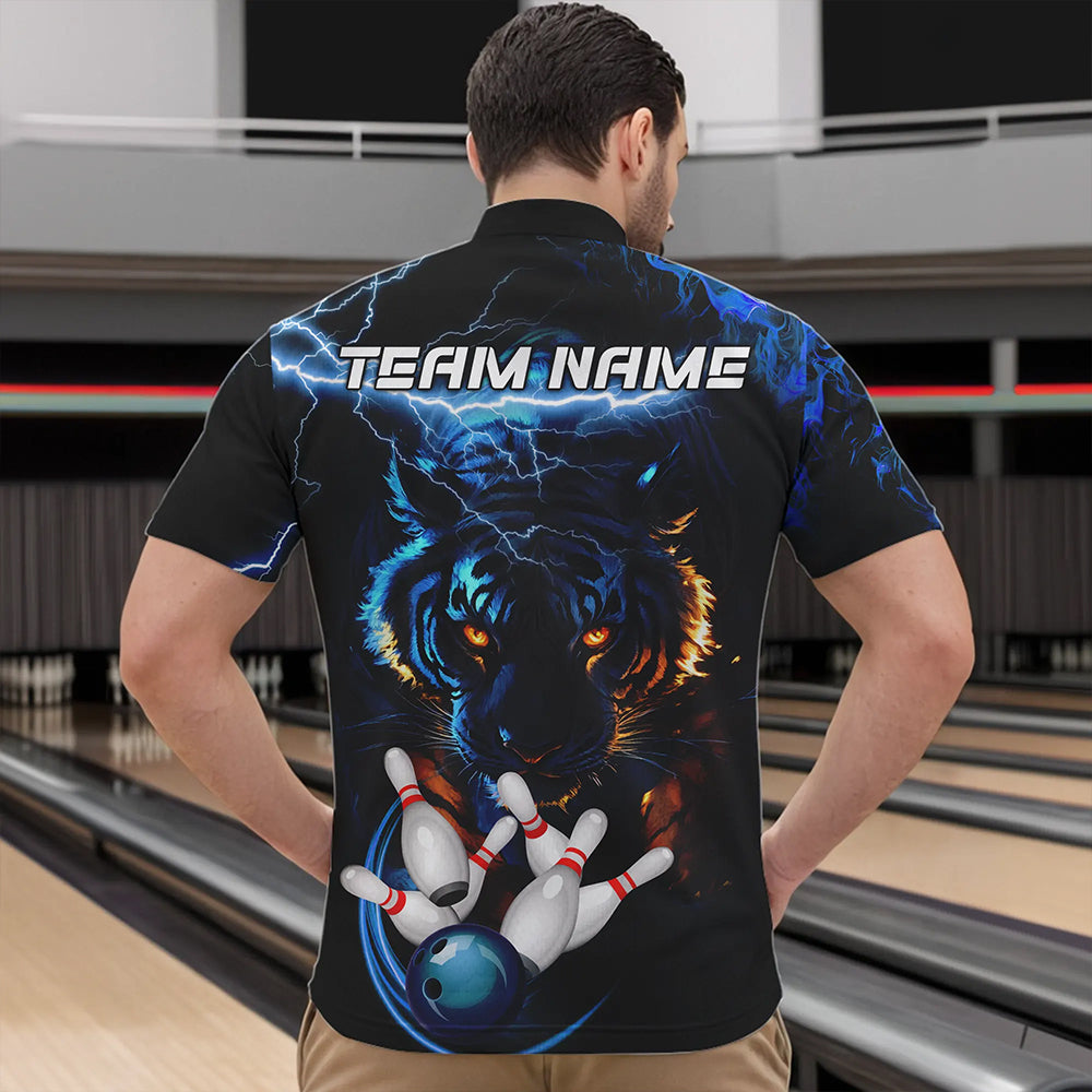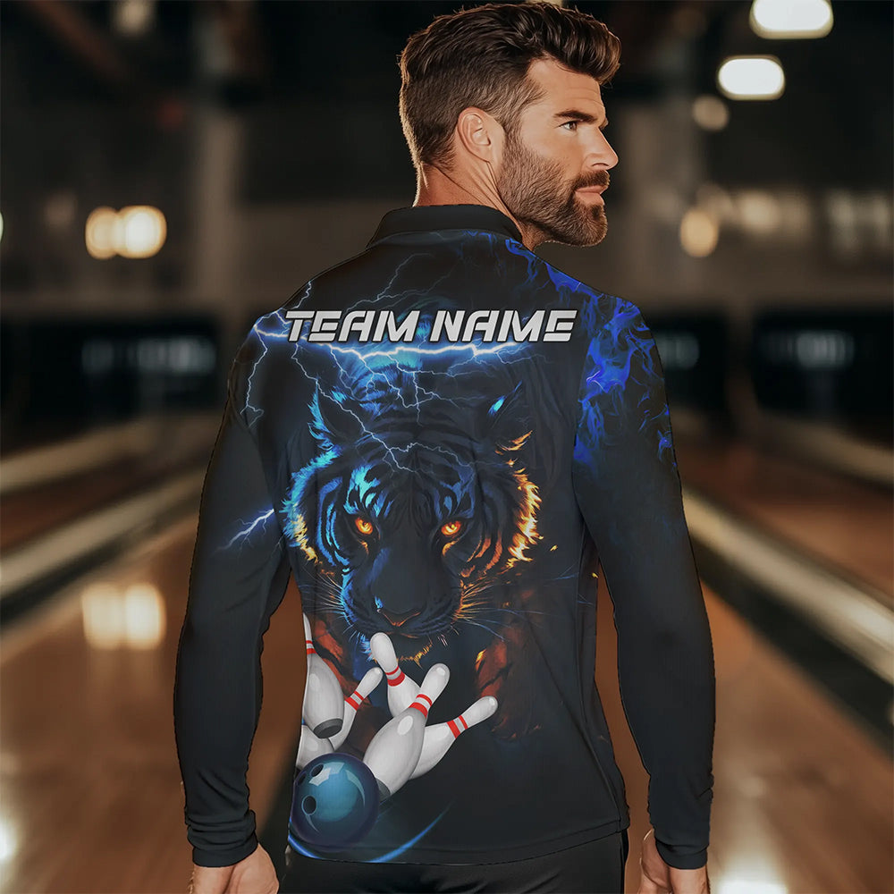 Personalized Blue Lightning Thunder Storm Tiger Bowling Shirts For Men Custom Bowling Team Jerseys NQS9466