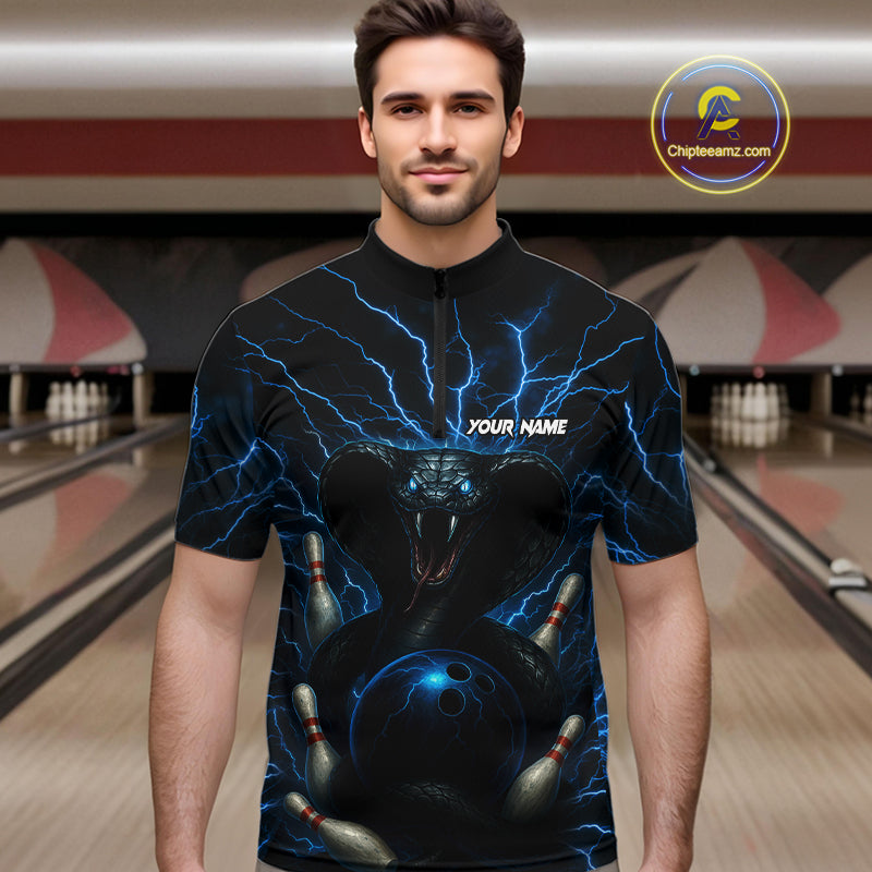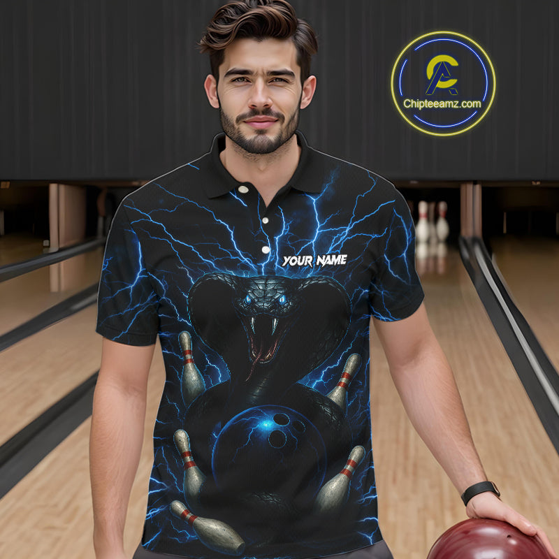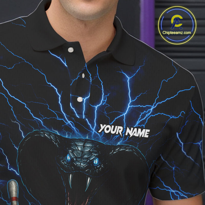 Personalized Blue Thunder Lightning Cobra Snake Bowling Shirt For Men, Custom Name Bowling Team Jersey NQS9834