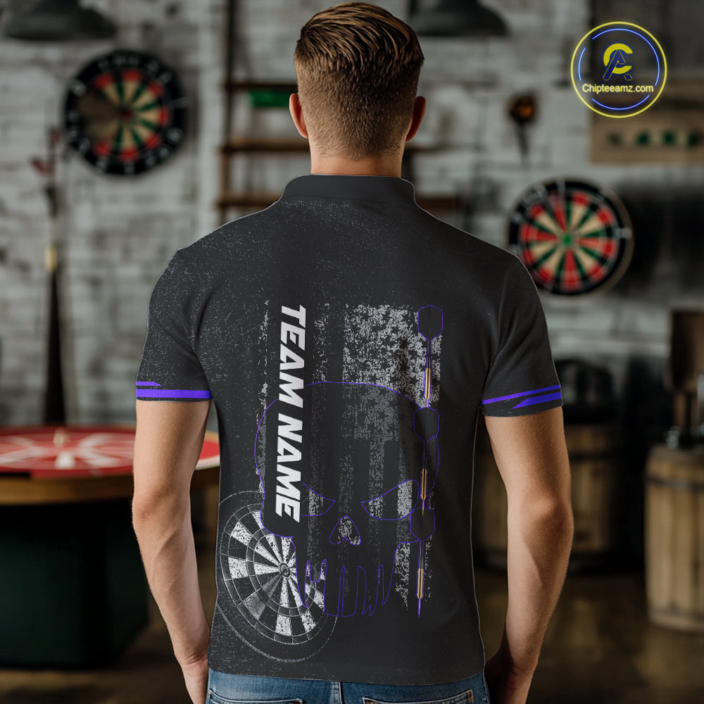 Black & White grunge American Flag Skull Mens Darts Shirt Custom patriotic Team Darts Jersey | Purple NQS10750