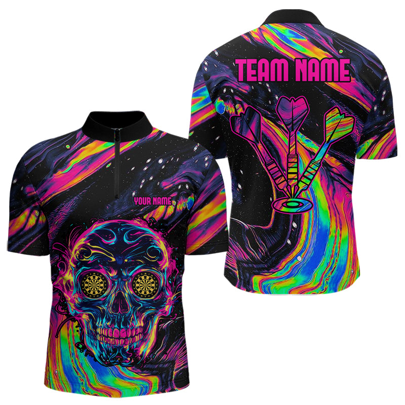 Colorful Psychedelic Skull Custom Dart Shirts For Men, Dart Team Jerseys NYN0020