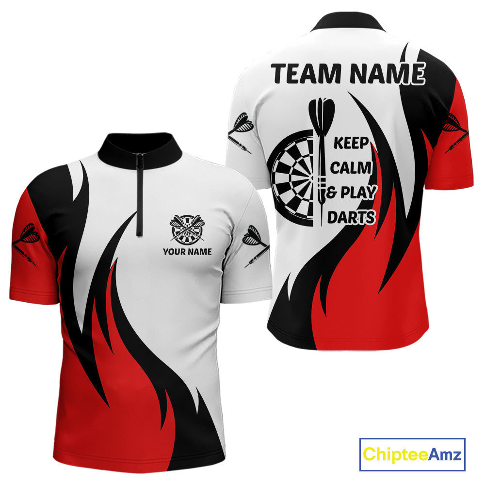 Keep Calm & Play Darts Custom Black-Red Dartboard Dart Shirts For Men Dart Team Jerseys NYN0061