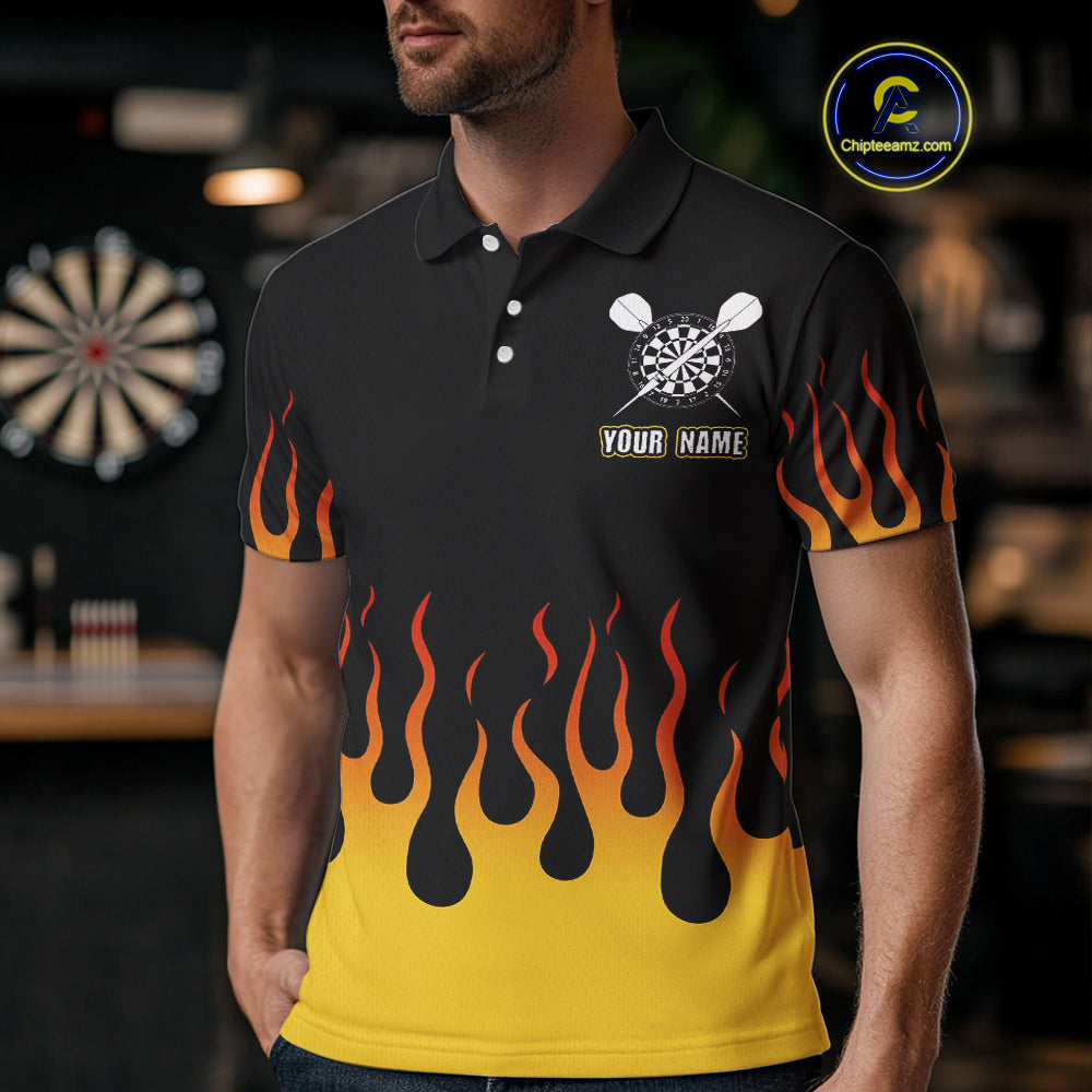 Custom Yellow Fire Flame Cracked Skull Dart Polo & 1/4 Zip Shirts For Men Dart Team Jerseys NYN0068