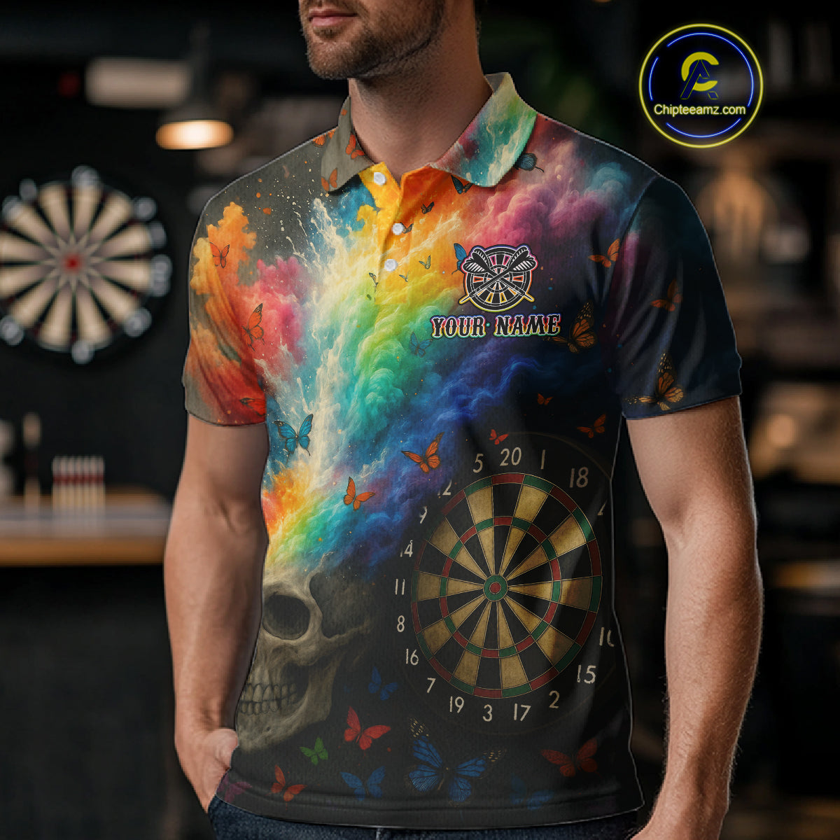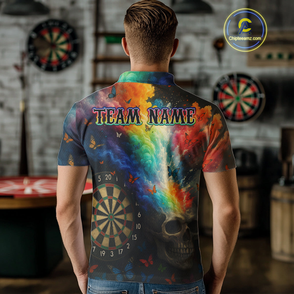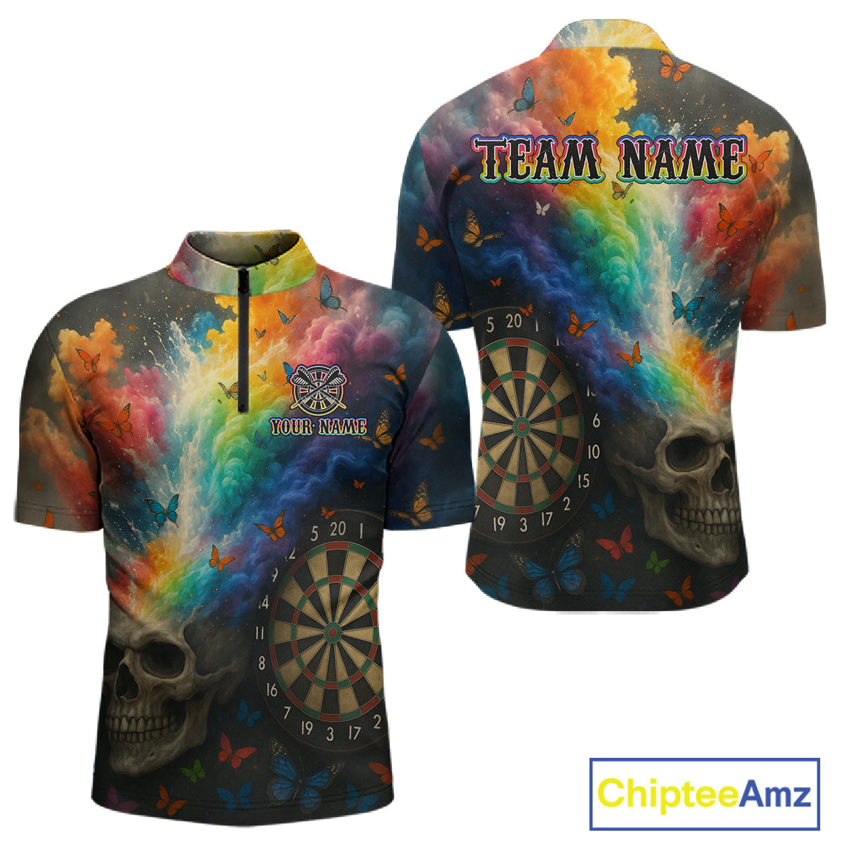 Custom Colorful Smoke Skull Dartboard Men Dart Shirt Outfits Butterflies Dart Jerseys NYN1063