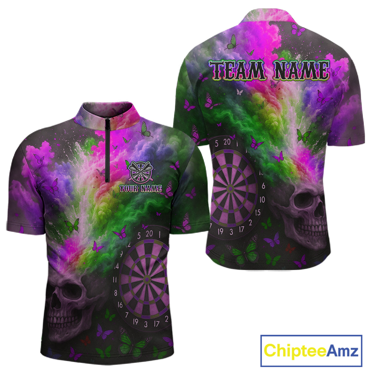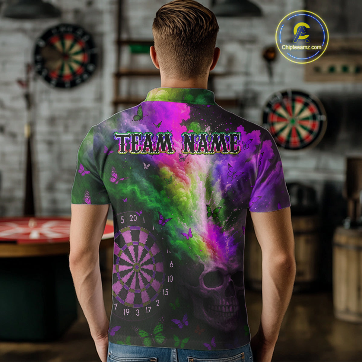 Custom Colorful Smoke Skull Dartboard Men Dart Shirt Outfits Butterflies Dart Jerseys NYN1065