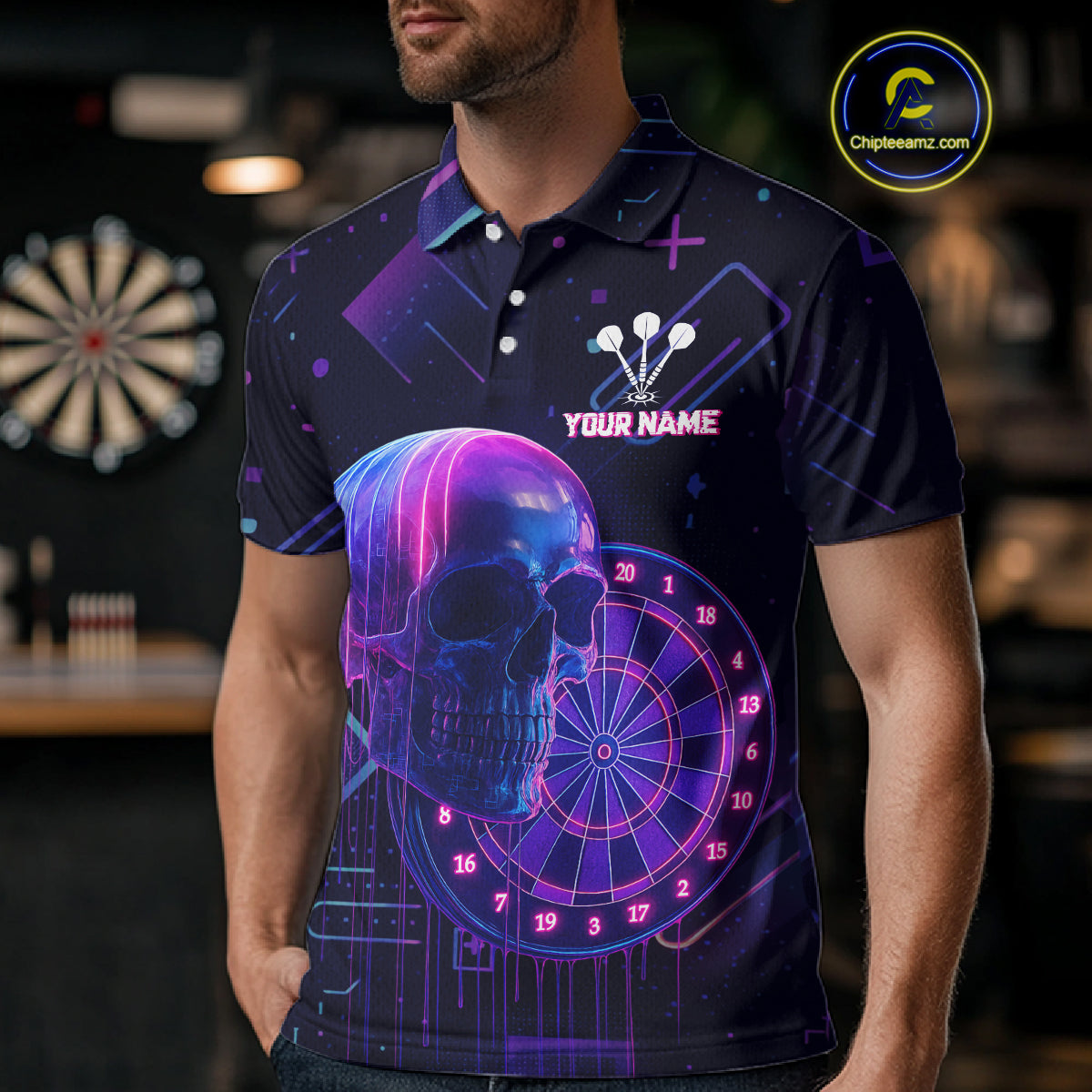 Custom Black & Purple Cyberpunk Dart Shirt For Men Neon Skull Dart Team Jerseys NYN1069