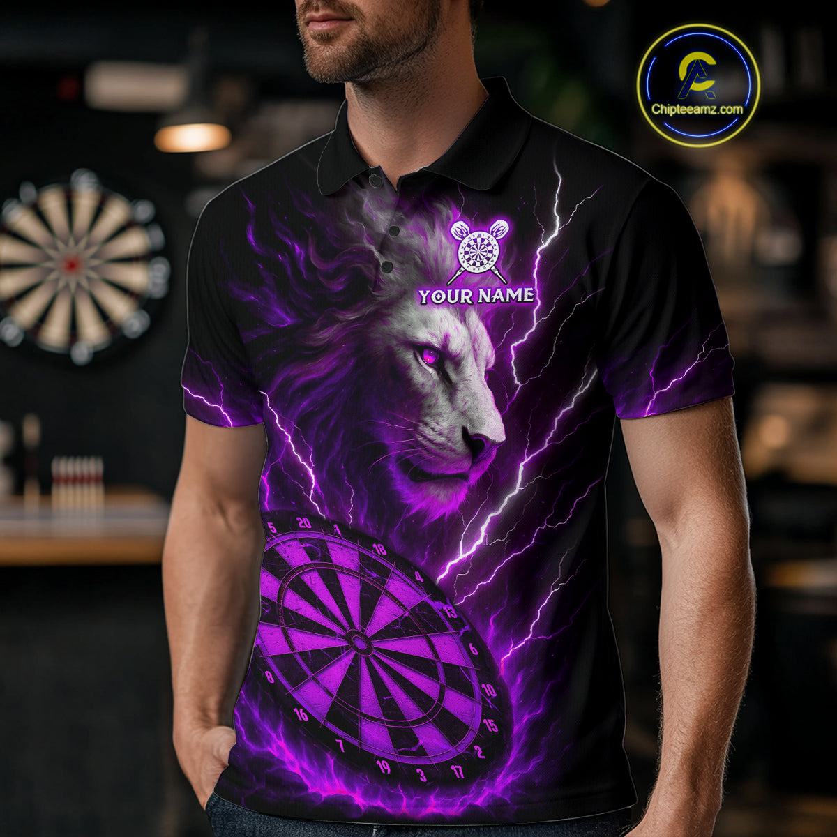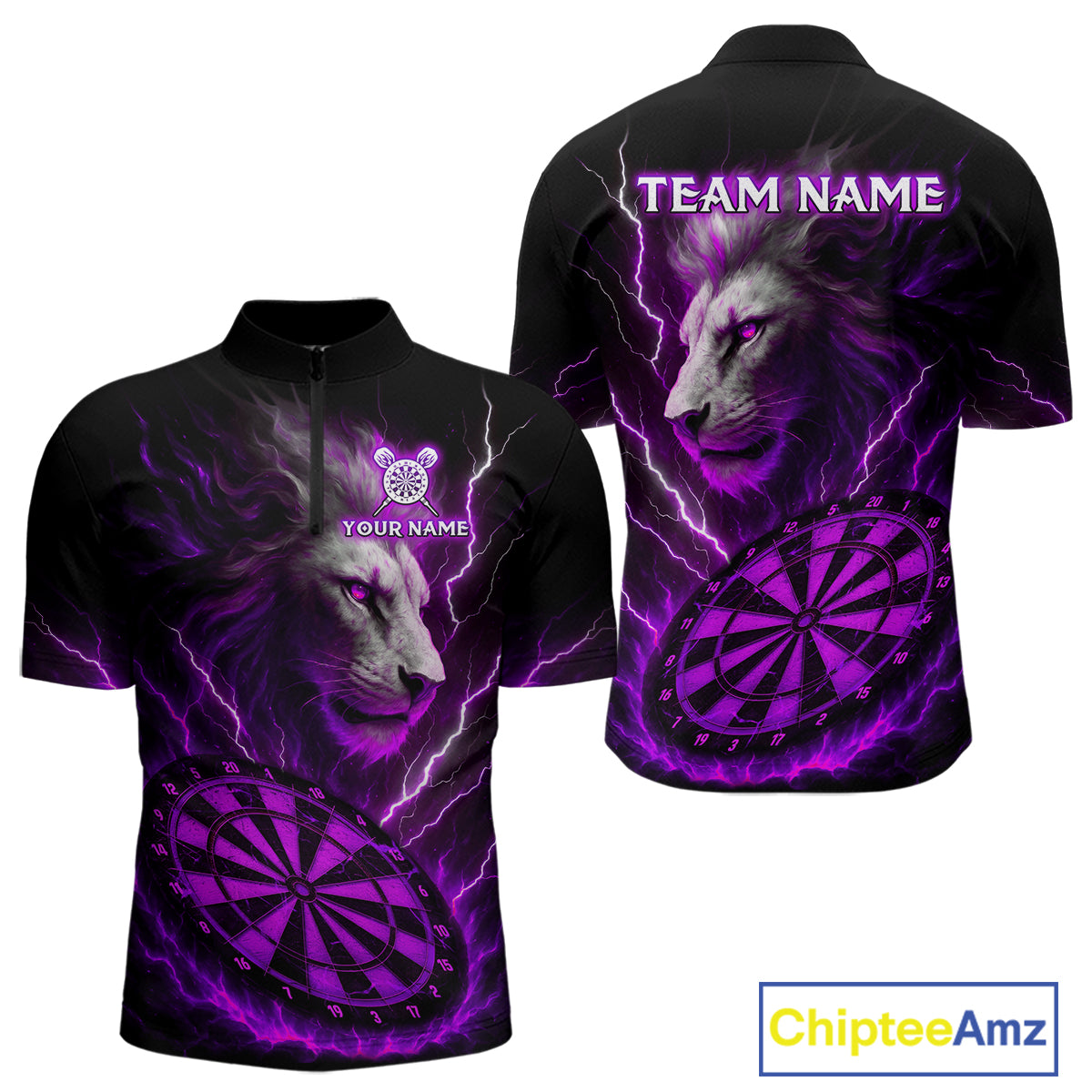 Purple Custom Men Darts Shirt With Lion Personalized Lightning Dartboard Dart Jerseys NYN1220