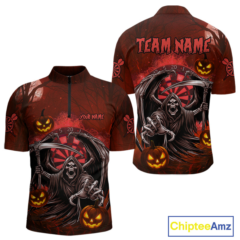 Funny Red Grim Reaper Halloween Darts Shirt For Men Custom Darts Jersey Team Polo & Quarter Zip TDM4665