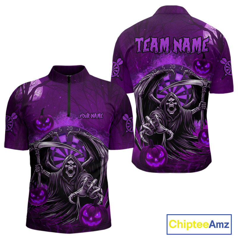 Funny Purple Grim Reaper Halloween Darts Shirt For Men Custom Darts Jersey Team Polo & Quarter Zip TDM4667