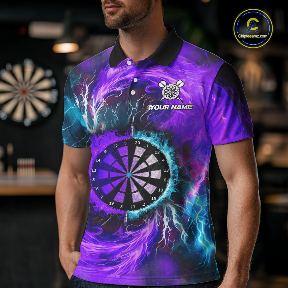 Blue And Purple Flame Lightning Darts Shirt For Men Custom Darts Team Jersey Polo & Quarter Zip TDM4701
