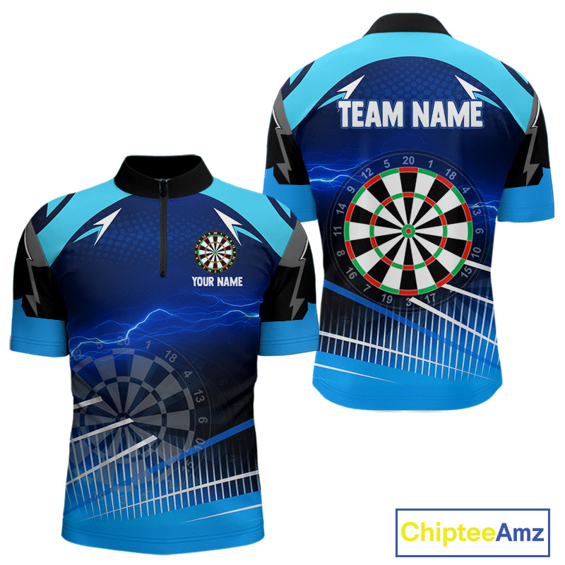 Personalized Blue Thunder Lightning Darts Jersey For Men Custom Darts Team Shirt Polo & 1/4 Zip TDM4721