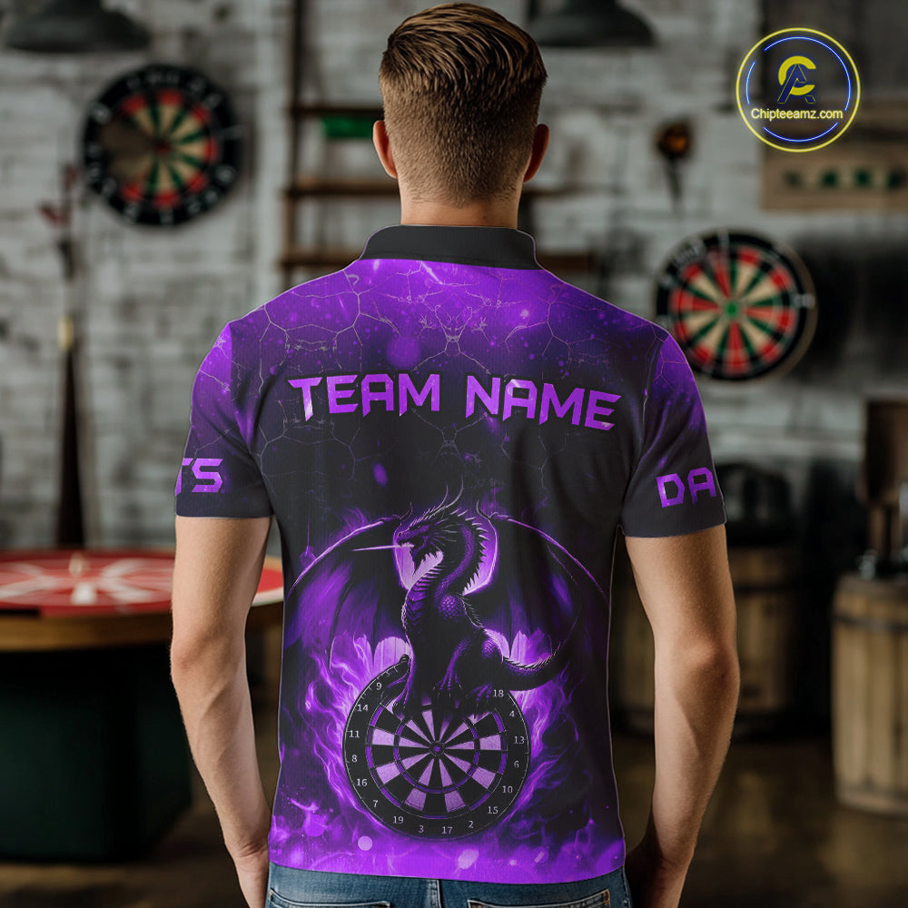 Darts Dragon Fire Flame 3D Printed Darts Shirts For Men Custom Team League Darts Jerseys |Purple TDM4759
